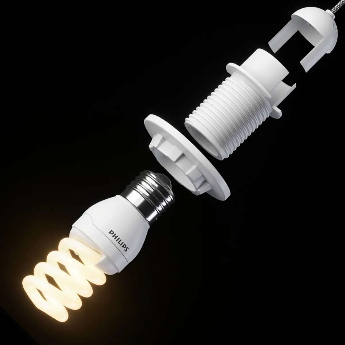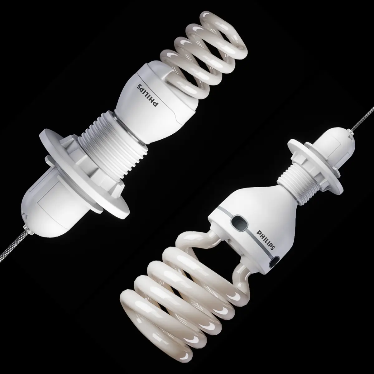 Compact fluorescent bulbs for E27 base.2 lamp models with thread and lampshade mount.