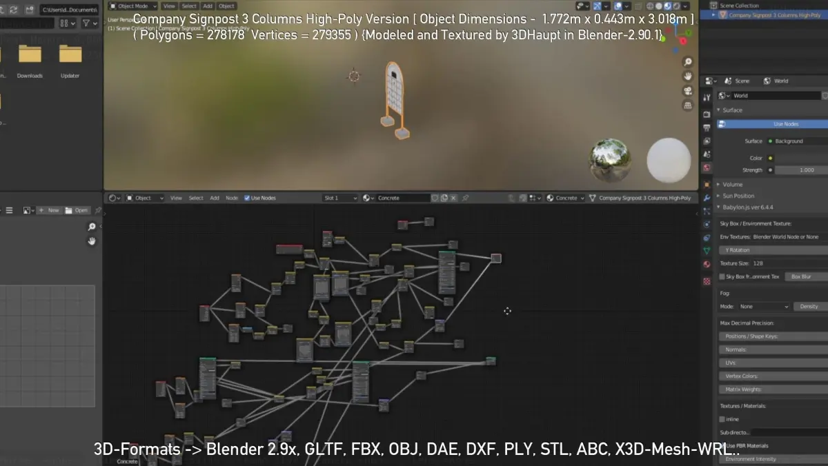 BLEND (Blender, filesize: 204 MB), OBJ (OBJ, filesize: 181 MB), FBX (Autodesk FBX, filesize: 181 MB), GLTF (glTF, filesize: 181 MB), ABC (Alembic, filesize: 181 MB), DAE (Collada, filesize: 181 MB), DXF (DXF, filesize: 181 MB), STL (Stereolithography, filesize: 181 MB)