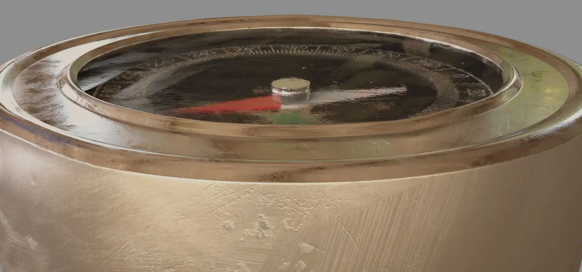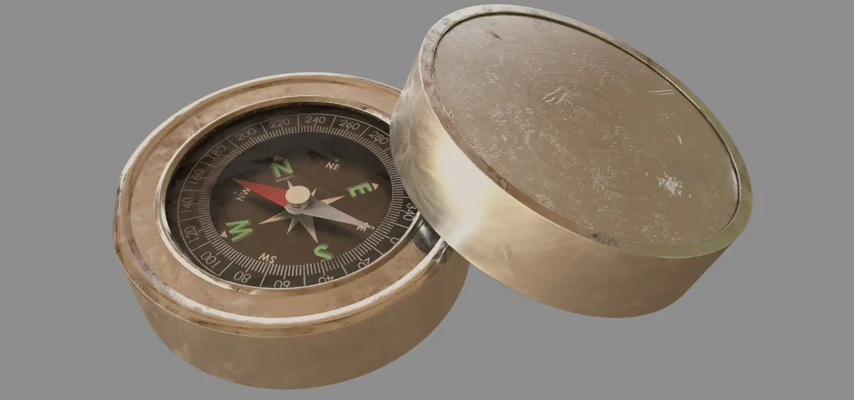 This compass was make in 3D maya and painting with Substance Painter. I can share only the .obj file and textures exported by Substance Painter. Its necessary to create the shader in the render engine that you want.