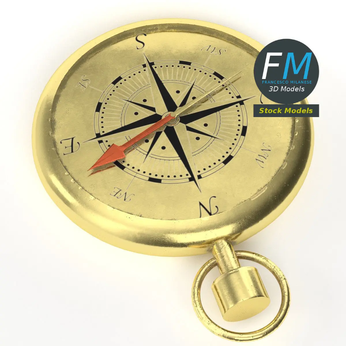Compass (navigation) tool 3D Model. 2 individual objects (base, needle; so, you can easily rotate or even animate it), sharing the same non overlapping UV Layout map, Material and PBR Textures set. Production-ready 3D Model, with PBR materials, textures, non overlapping UV Layout map provided in the package.