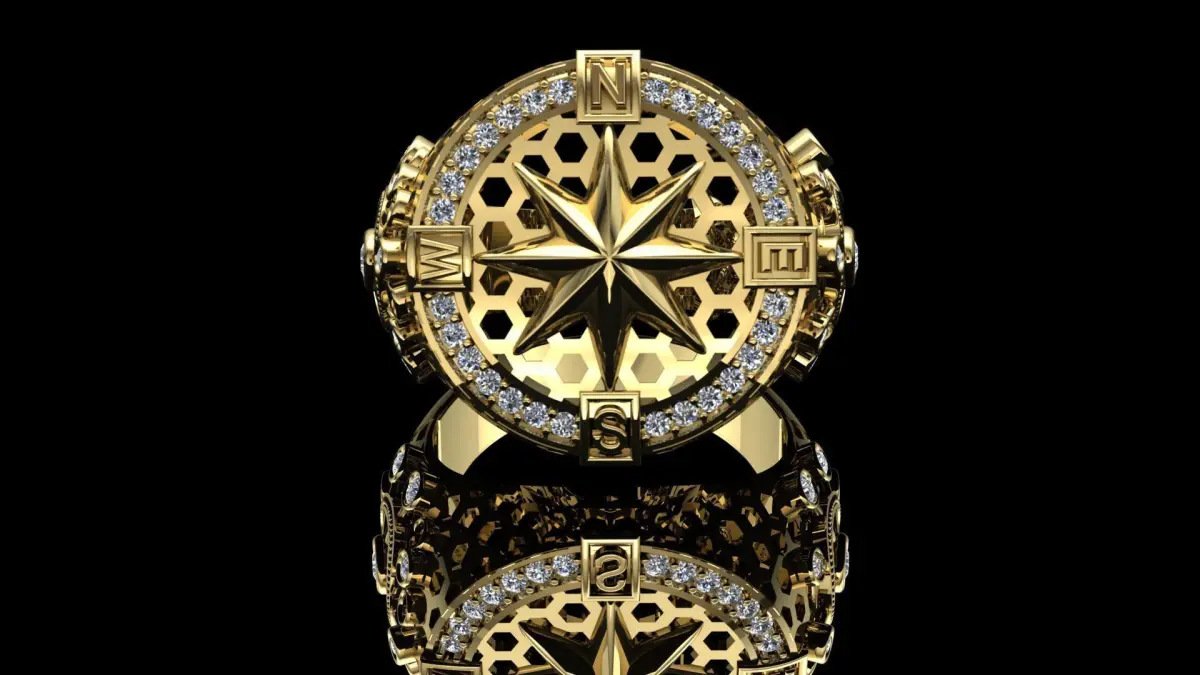 compass ring with diamonds 3D print model