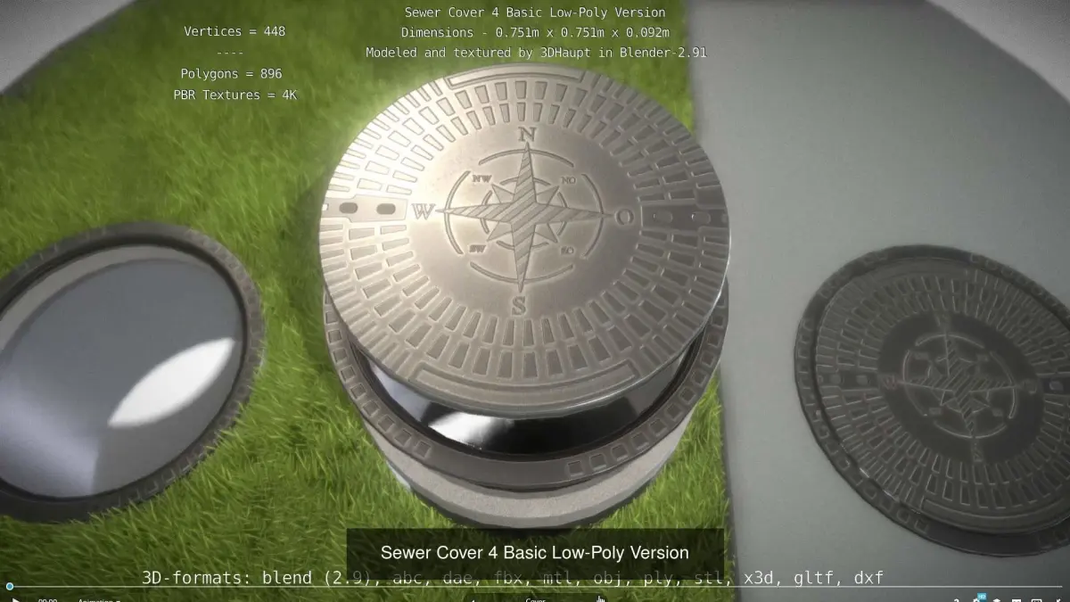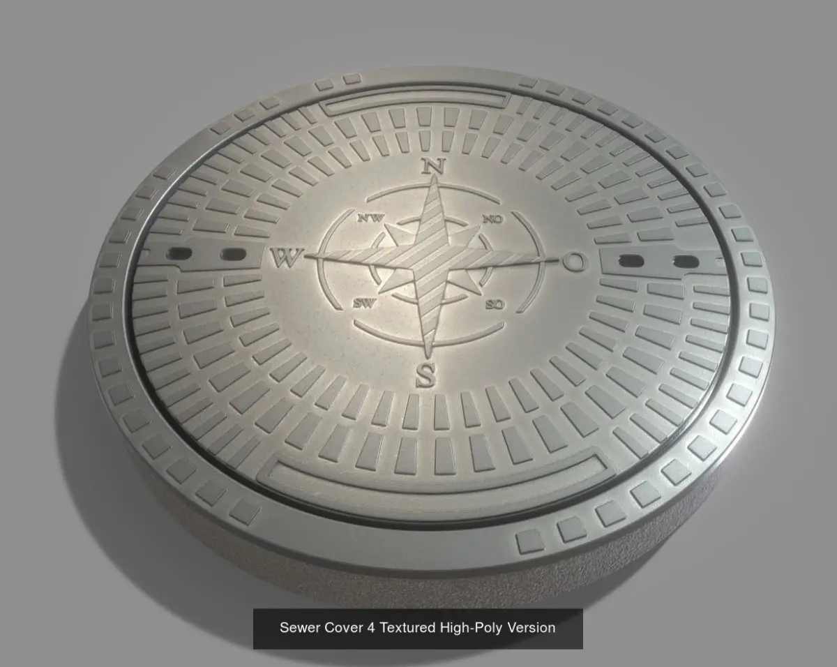 Compass sewer cover 4 basic low and high-poly versions.