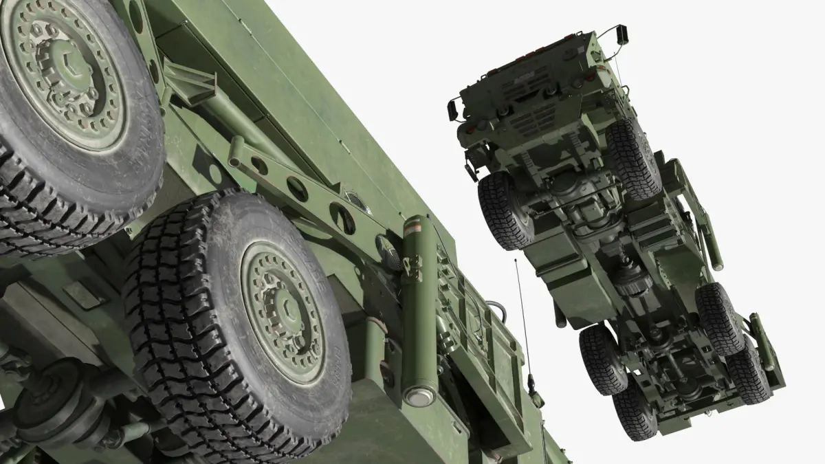 Compiled MEADS Mobile Surveillance Radar Vehicle is a 3d model of a High Mobility Artillery Rocket System, a versatile and advanced military vehicle designed for rapid deployment and precision strike capabilities.