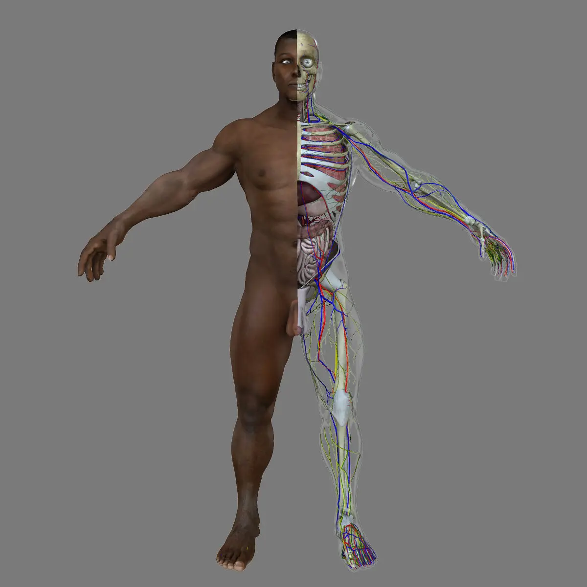 The most complete Full Body Male Anatomy asset available. Over 600 muscles and all major systems. Includes full body skeletal system with connective tissue, muscular system, circulatory system, nervous system, lymphatic system, digestive system, respiratory system, and urogenital system.