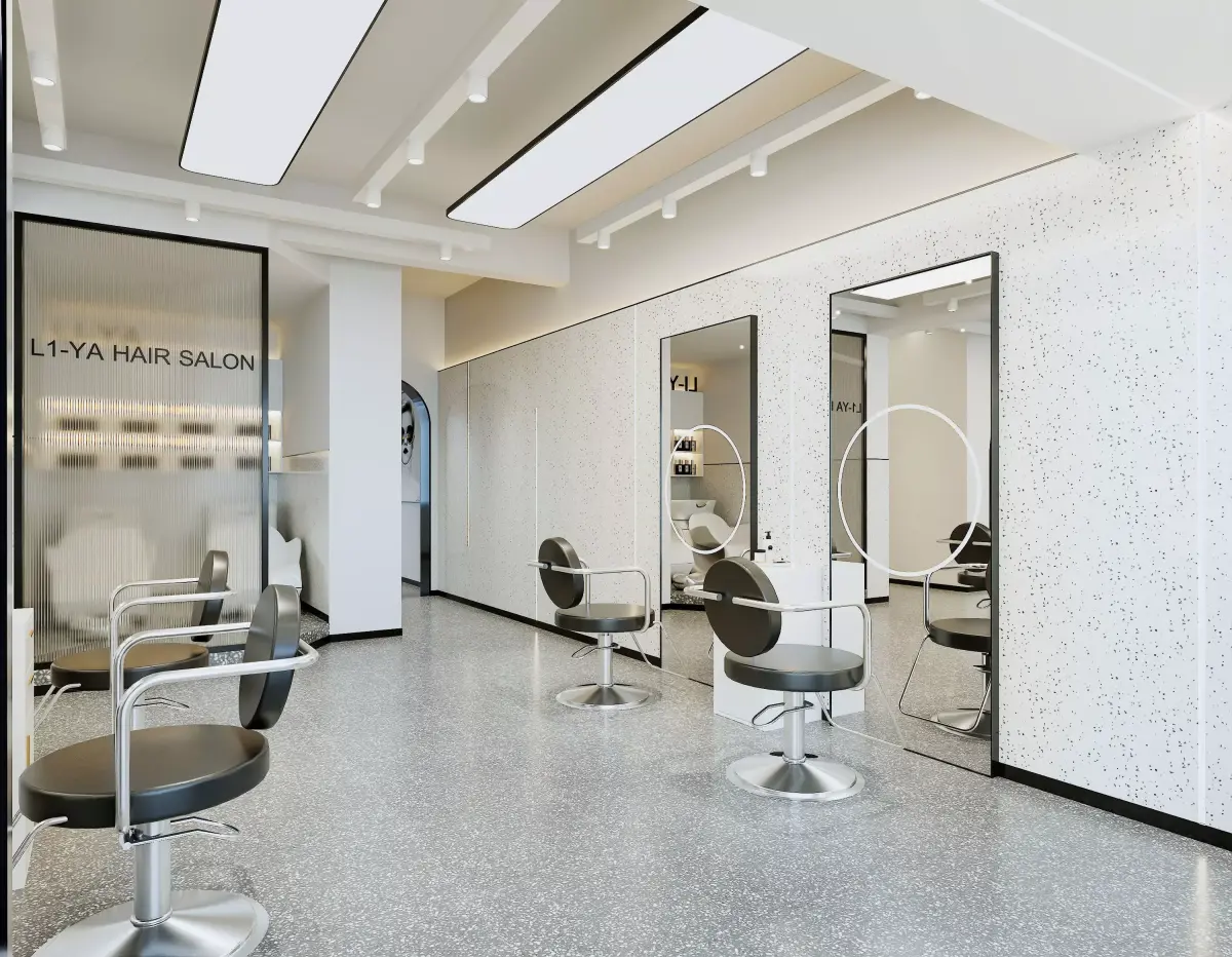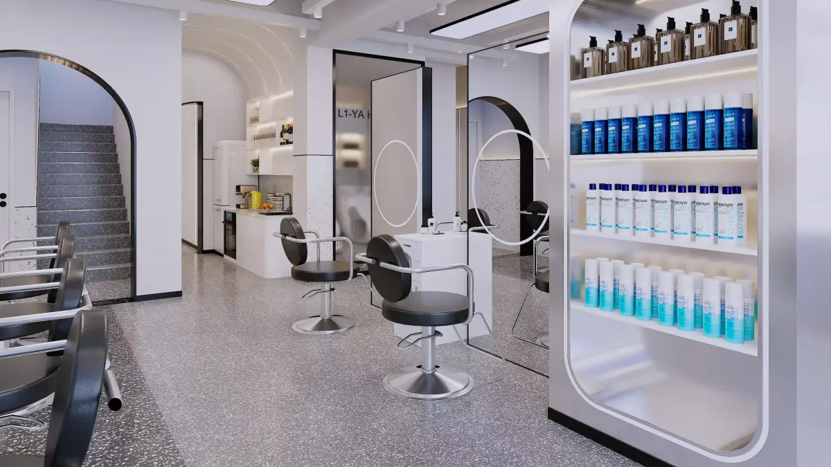 This is a highly detailed and fully customizable 3D model of a modern, stylish barber shop interior. It's perfect for architectural visualization, animation, game development, virtual reality experiences, and advertising renders. The scene is designed with a clean, masculine aesthetic, featuring classic barber elements with a contemporary twist.