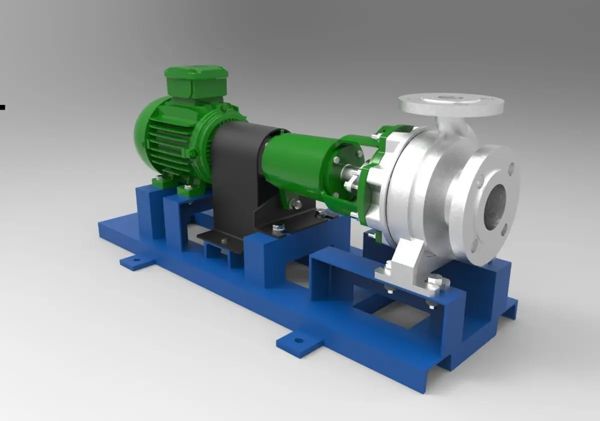 Centrifugal Pump with AC motor, with all internal components such as bearings, seals, mechanical seal, rotor and bolts. The model is in parametric formats included such as STEP, IGES. Every part of this assembly can be individually taken apart and inserted separately in scene or used individually from the other parts.
