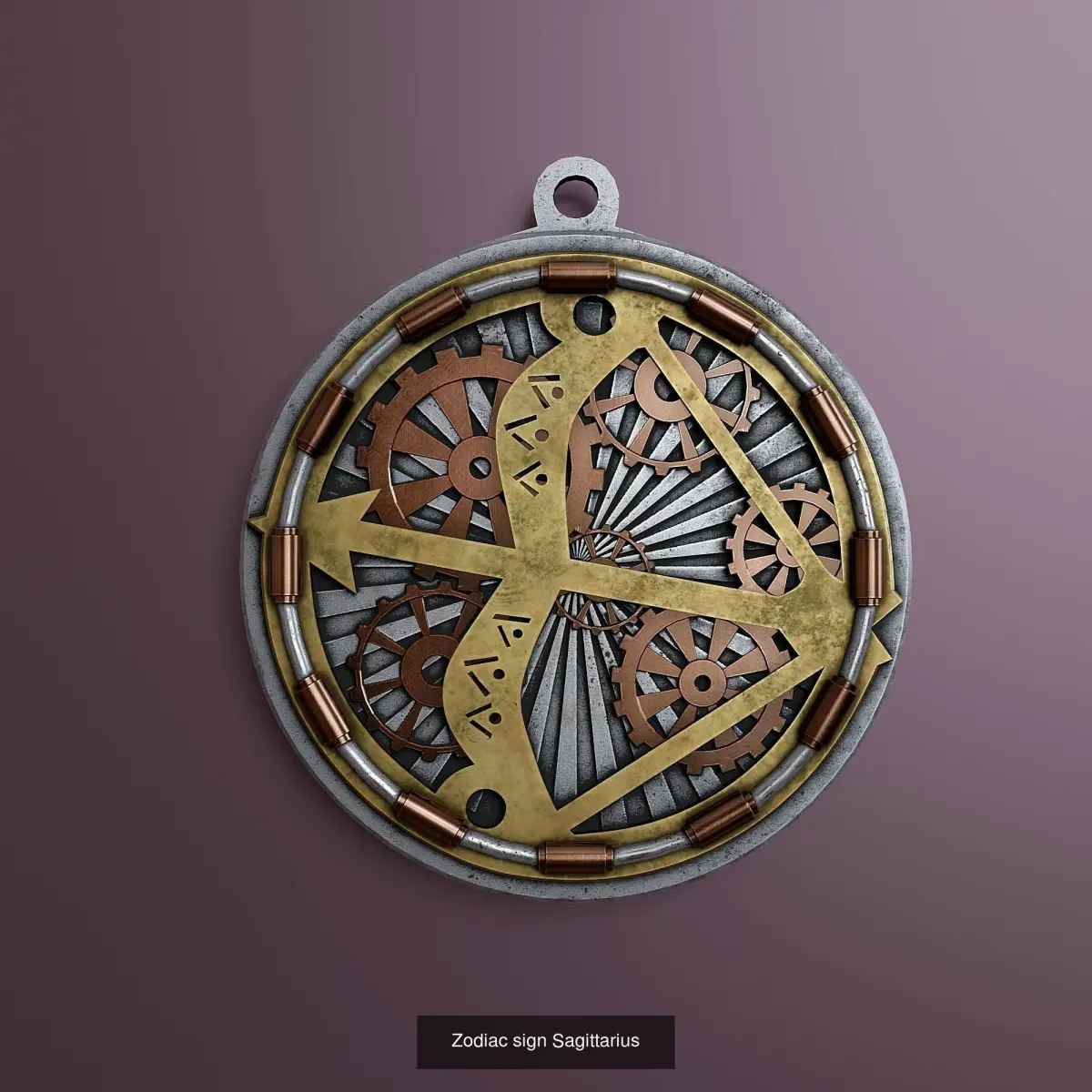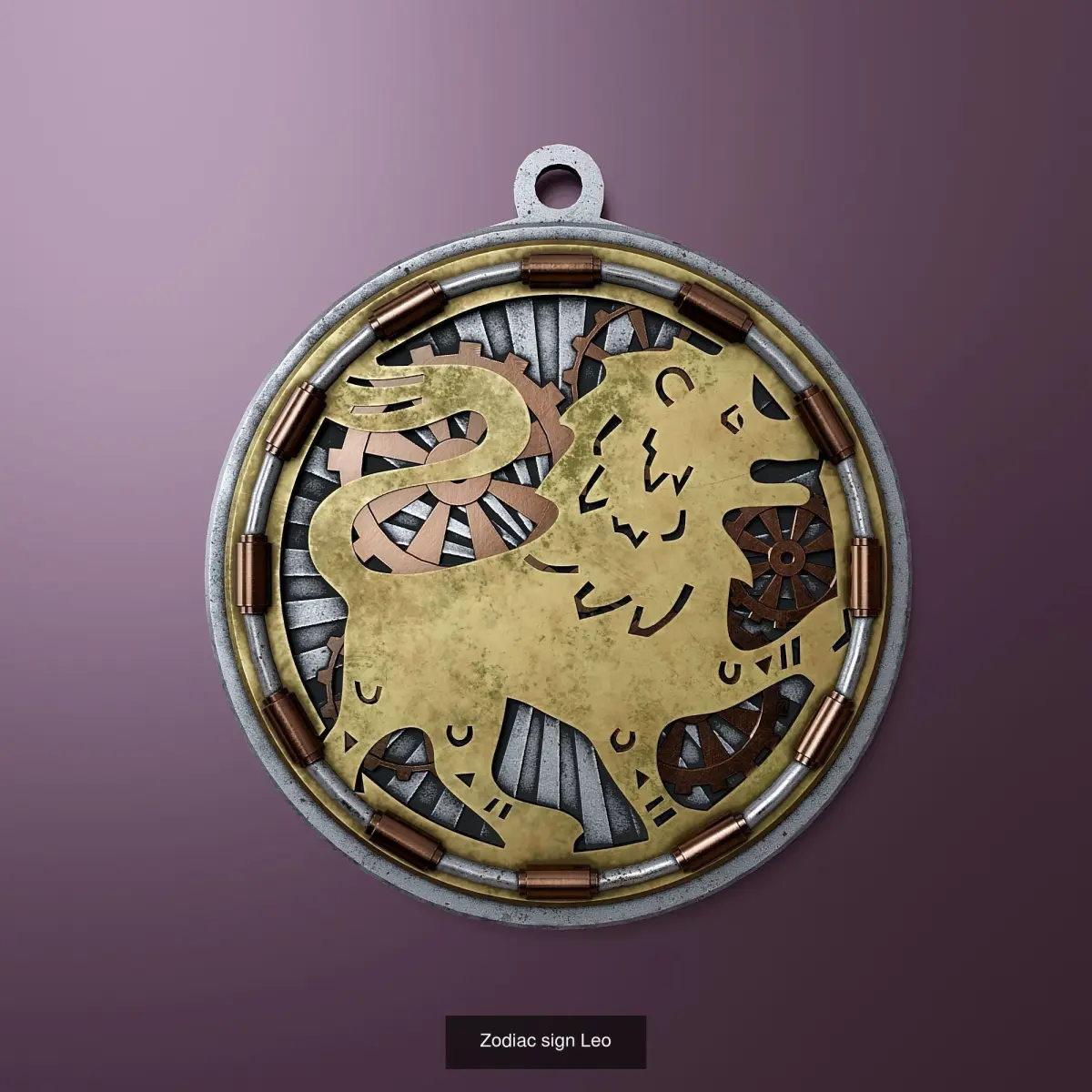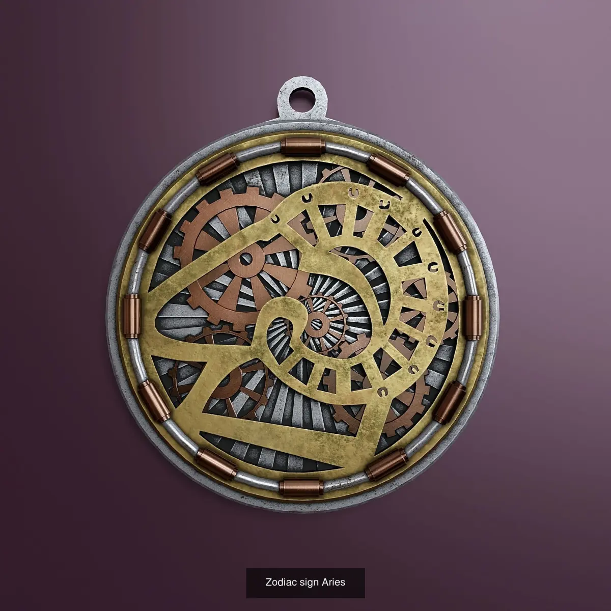 Complete collection of zodiac symbols. The set consists of 12 models.Pendants (keychains) in steampunk style.All textures (res. 2048x2048) were baked in Substance Painter and packed in a zip archive.