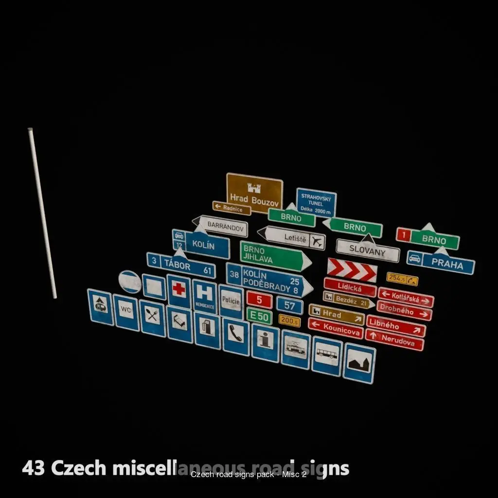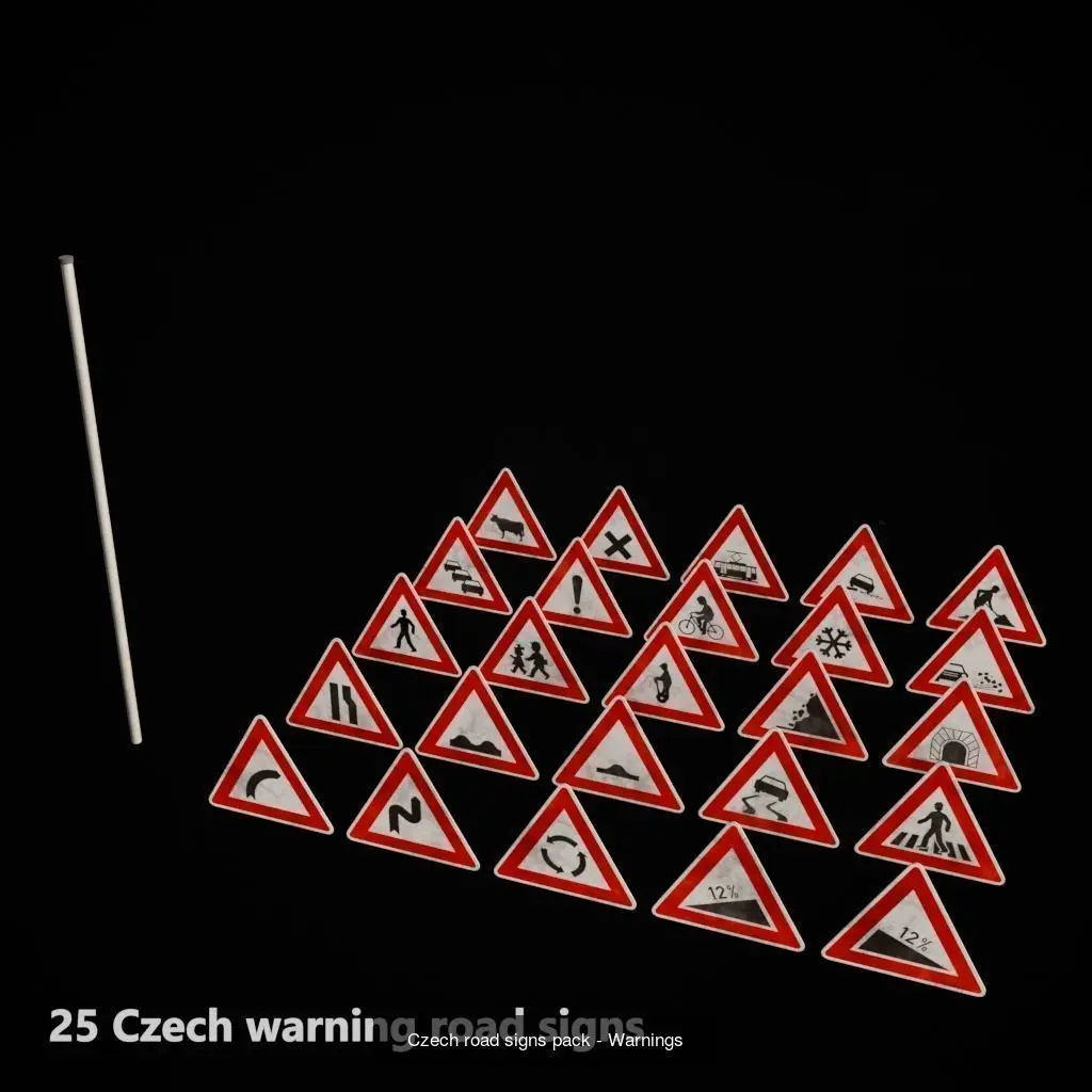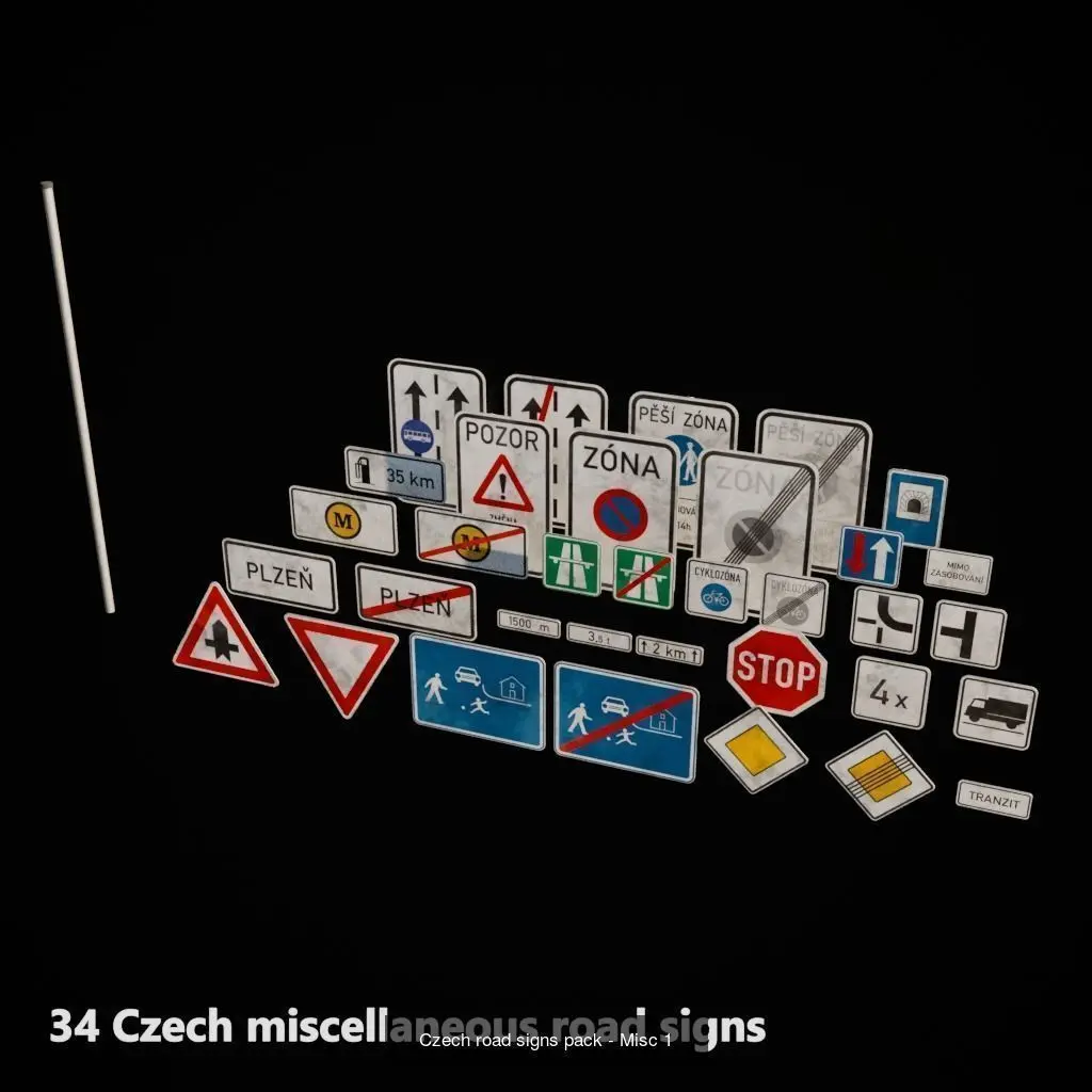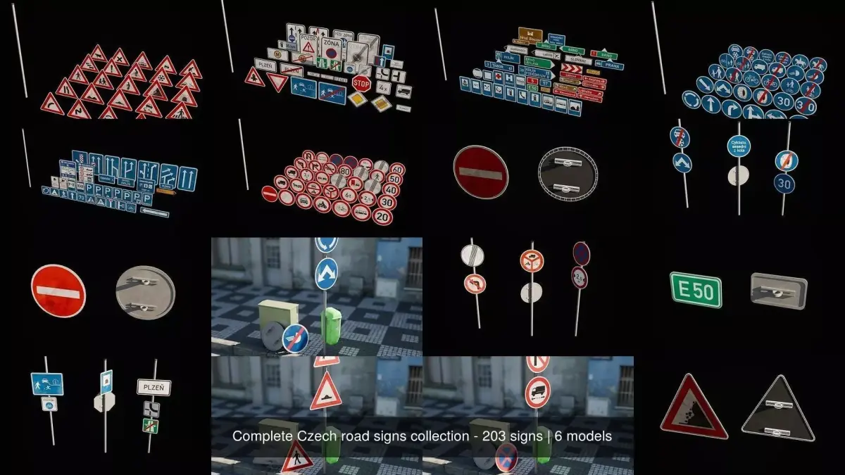 A truly massive collection of 203 road signs from the Czech republic. This includes almost every sign available.Features: Low poly - 900 - 1600 tris per sign PBR 2K Materials - Realistic textures with surface imperfections Modular - Origins of objects are aligned to allow for quick and easy stacking of signs and poles
