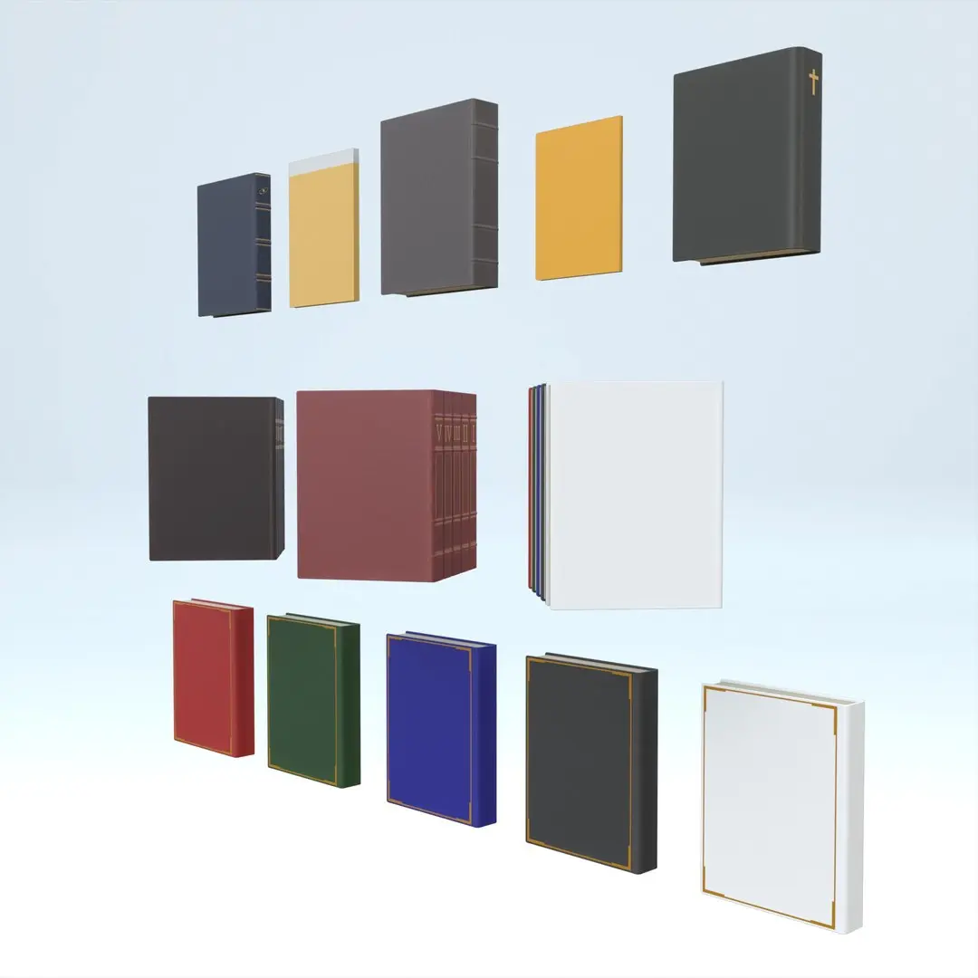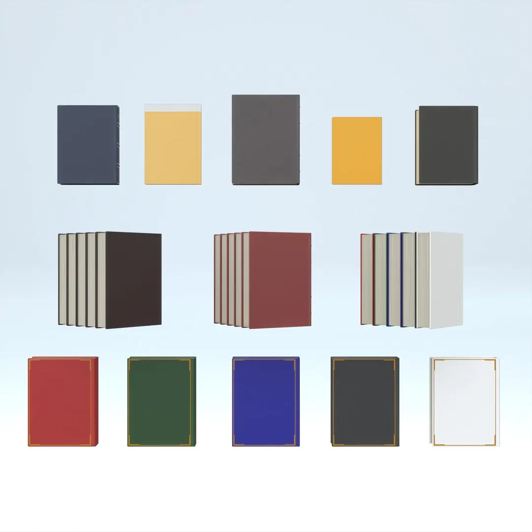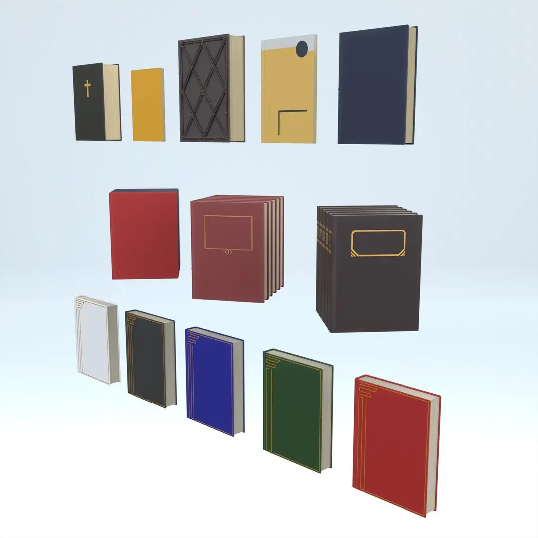 The variety of cover styles allows artists to create visually rich and believable book arrangements without repetition, making the collection ideal for shelves, desks, tables, and background scenes.