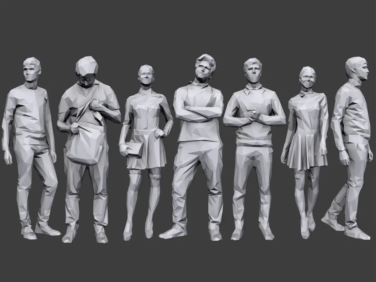 Complete Lowpoly People Pack low-poly 3d model ready for Virtual Reality (VR), Augmented Reality (AR), games and other real-time apps.