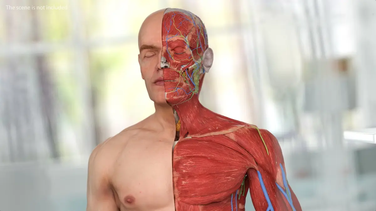 Complete Male Full Body Anatomy is a high quality, photo real 3d model that will enhance detail and realism to any of your rendering projects. The model has a fully textured, detailed design that allows for close-up renders, and was originally modeled in 3ds Max 2012 and rendered with V-Ray. Renders have no postprocessing.