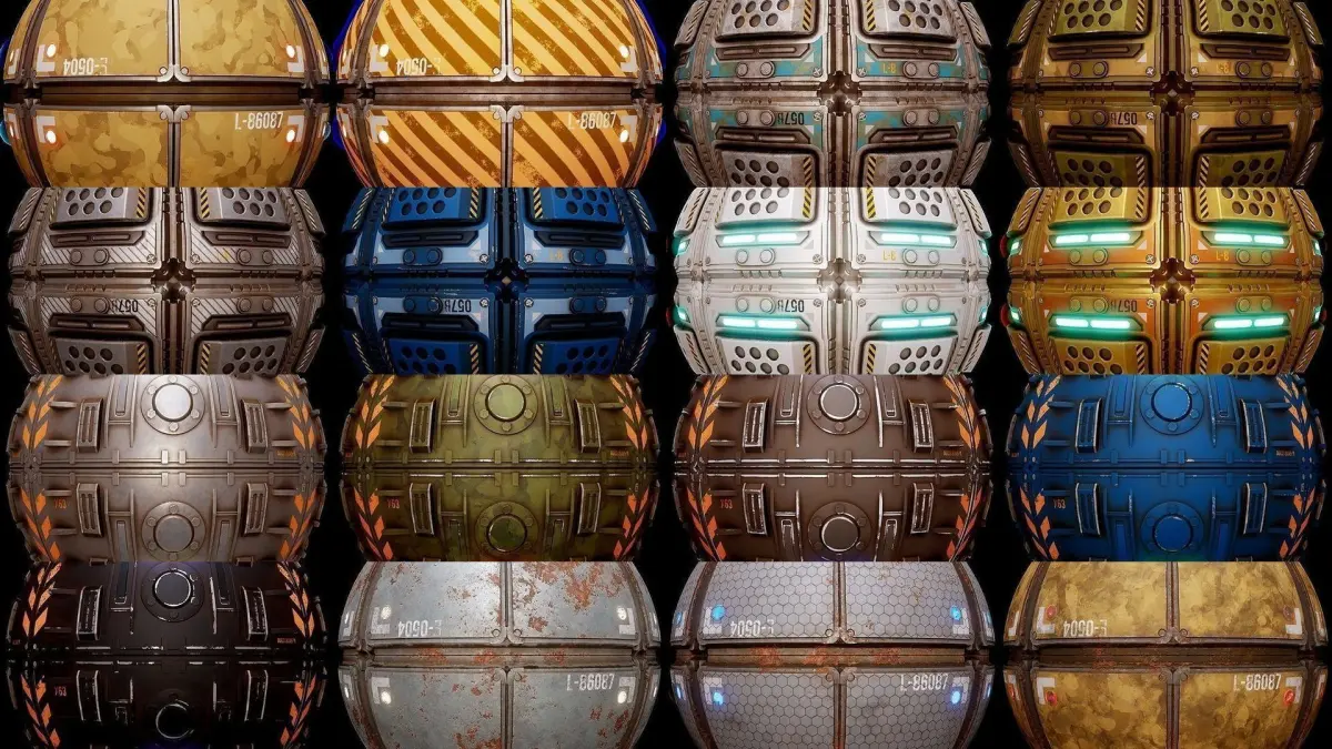 Seamless PBR Textures Collection for Spaceship Sci-Fi Settings, can be used on Corridor Floors, Hangars, Ship Hulls etc. or combine them with other sets to give your level the desired Design.