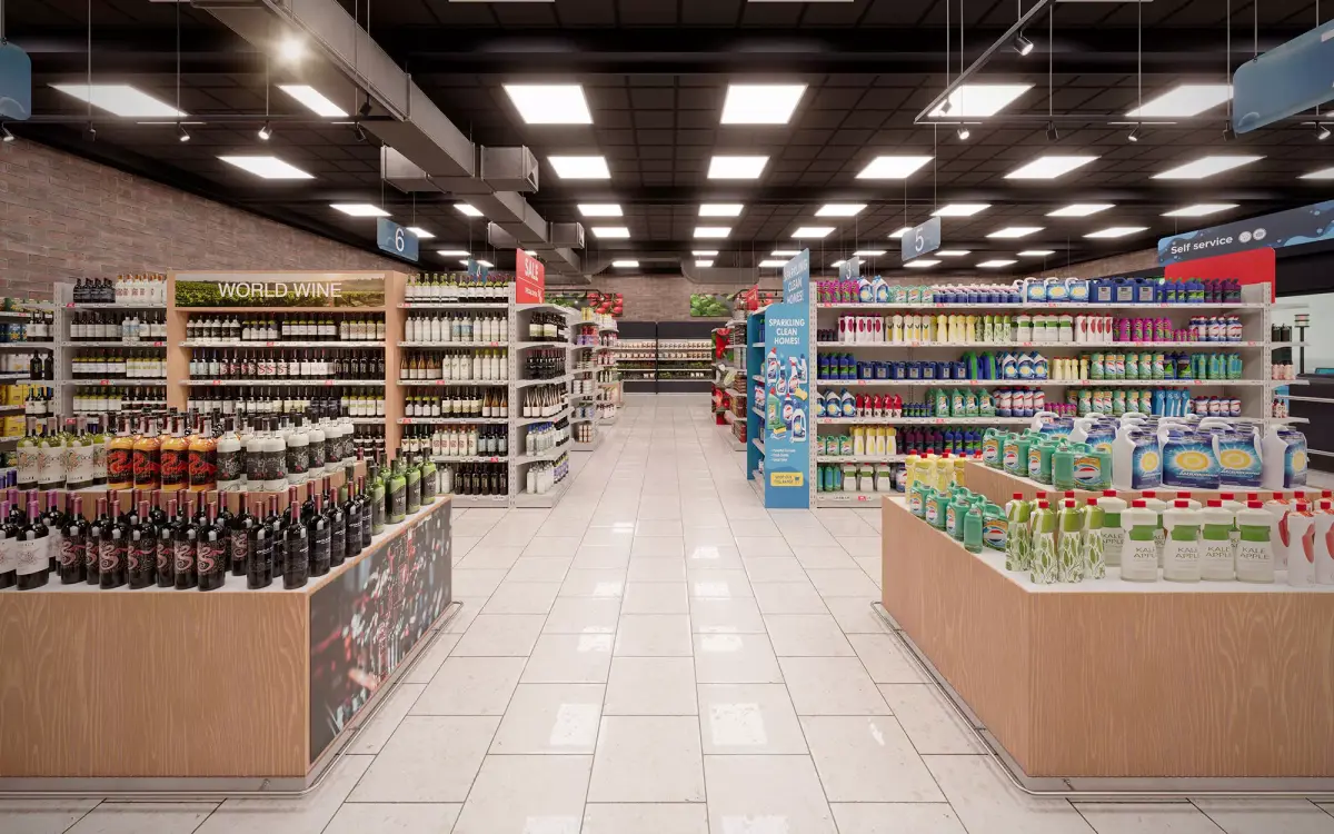 -fully stocked shelves with variour products (all set as c4d instances for faster viewport performance)-standard checkout and self checkout tills-difrent display units