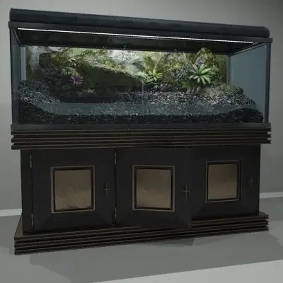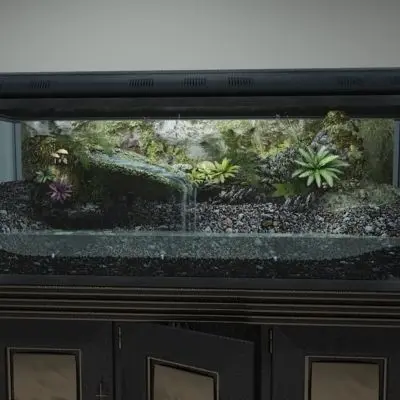 Complete Terrarium / Vivarium with Filter, Aquarium Glass, Stand, Light Fixture, water, gravel, plants fish food and more.