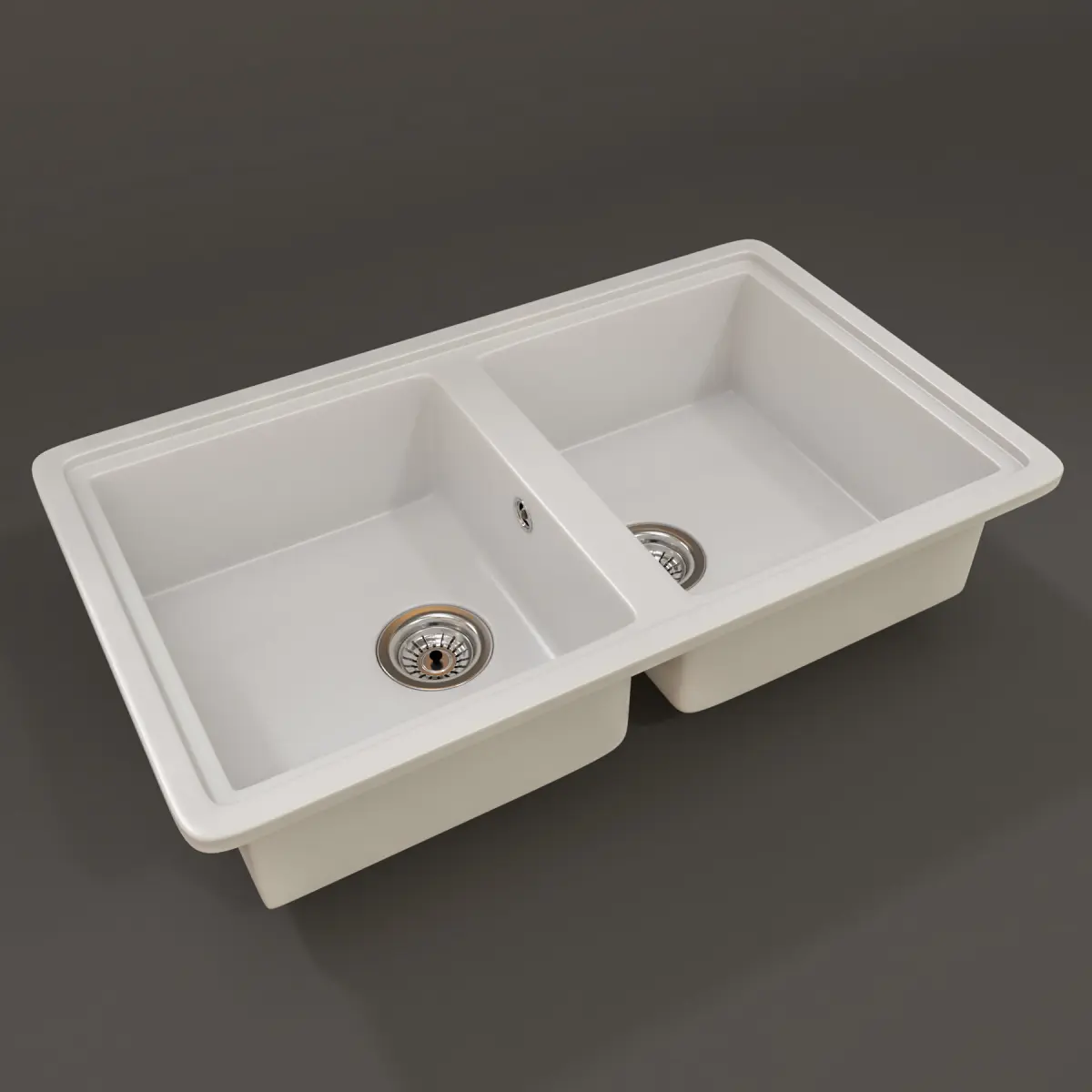 White synthetic sink with chrome-plated drains. High-quality modelling, perfect for architectural visualisation with full-scale measurements.
