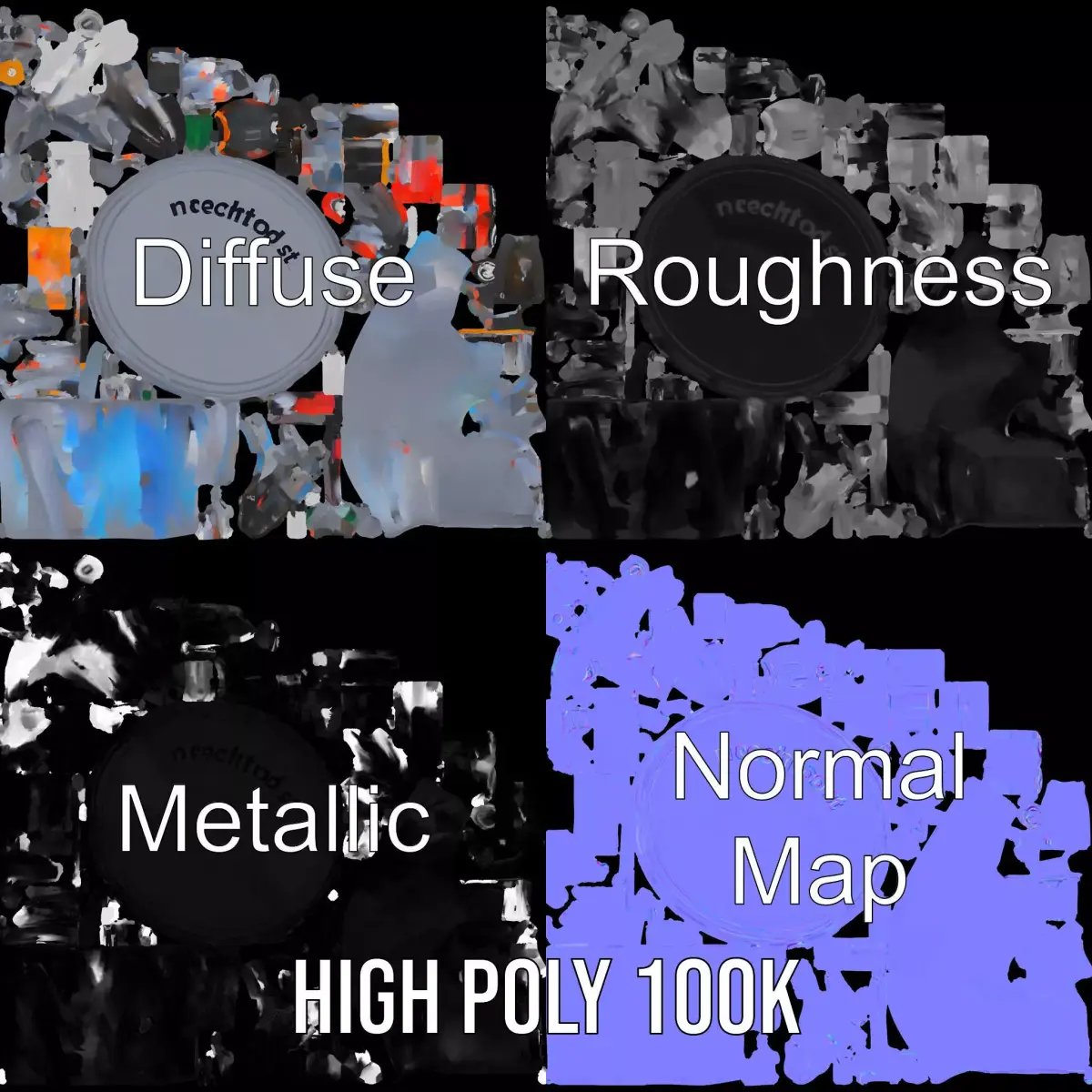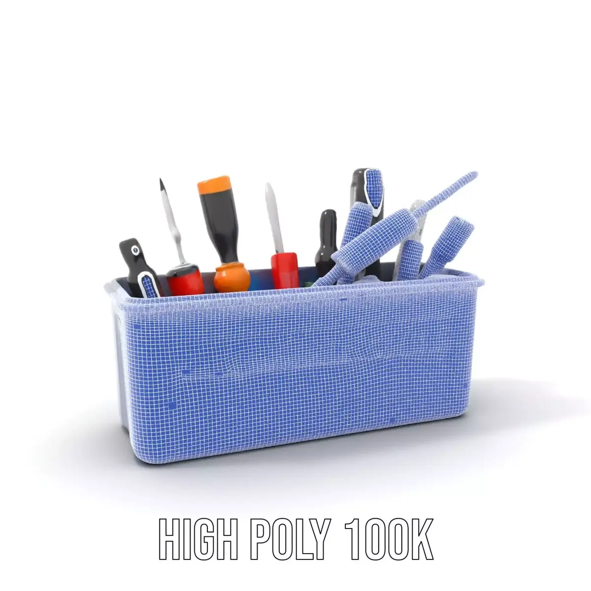 This mechanic tool set model pack is ideal for creating realistic garage, workshop, and maintenance scenes in 3D environments. Each model has 3 levels of detail: low-poly (1000 triangles for mobile), middle-poly (10,000 triangles for environment), and high-poly (100,000 triangles), which allows for the use of this model in production rendering (such as 3ds Max, Maya, Cinema 4D, Blender, Vray/Corona/Cycles, and all others), game engines (Unity and Unreal compatible), and interactive presentations, providing a choice of detail based on the LOD System principle. The first image is the reference used for creating the 3D model. It is important to carefully evaluate the quality of the model by examining the preview images that display the topology and polygonal mesh. These previews (WIRE and WEB 3D Preview) clearly demonstrate how accurately the model matches the original reference and how well the geometry has been executed. The model's textures are PBR, Diffuse, NormalMap, and reflection/roughness/metallic, which are suitable for any modern rendering engine. The set includes a variety of tools such as screwdrivers, pliers, and wrenches, perfect for detailed and realistic creations. All models are accurately unwrapped and have no overlapping UVs. All textures are 4096*4096 in size. Please like and leave a comment for the model if you enjoyed it.