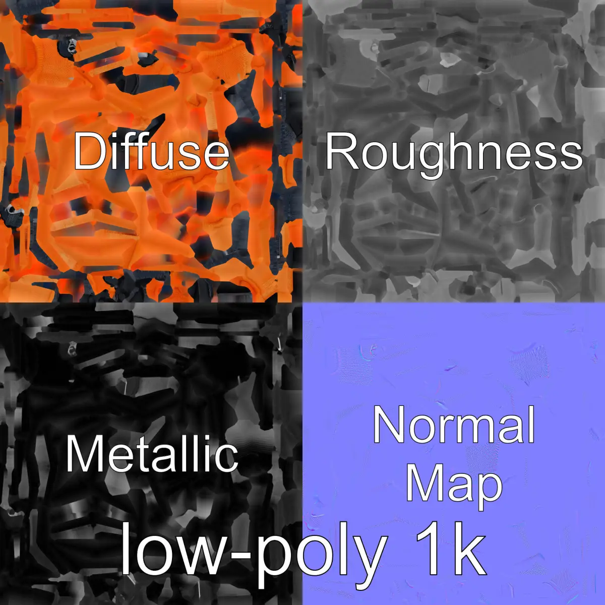 The model's textures are PBR, Diffuse, Normal Map, and reflection/roughness/metallic, which are suitable for any modern rendering engine. All models accurately unwrapped and have no overlapping UV.