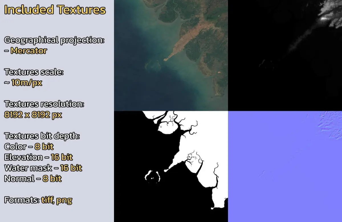 - Textures resolution: ~10m/px