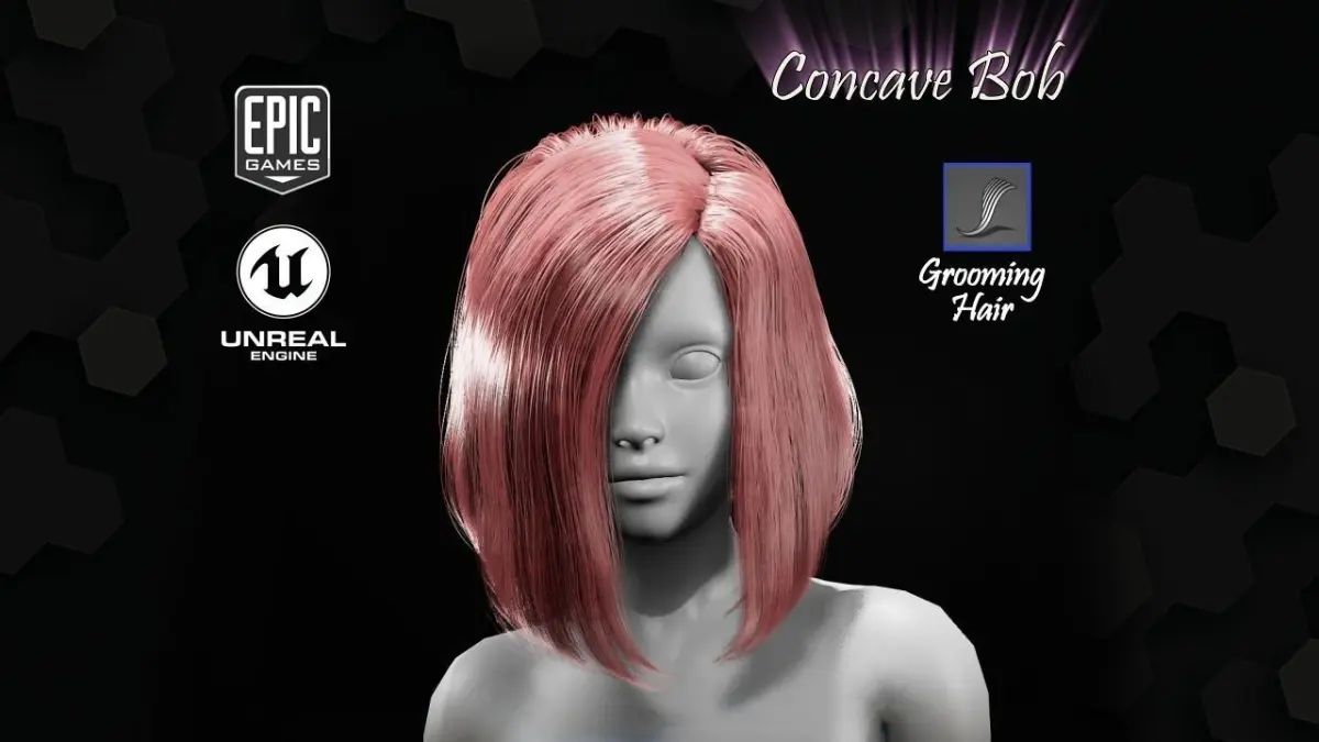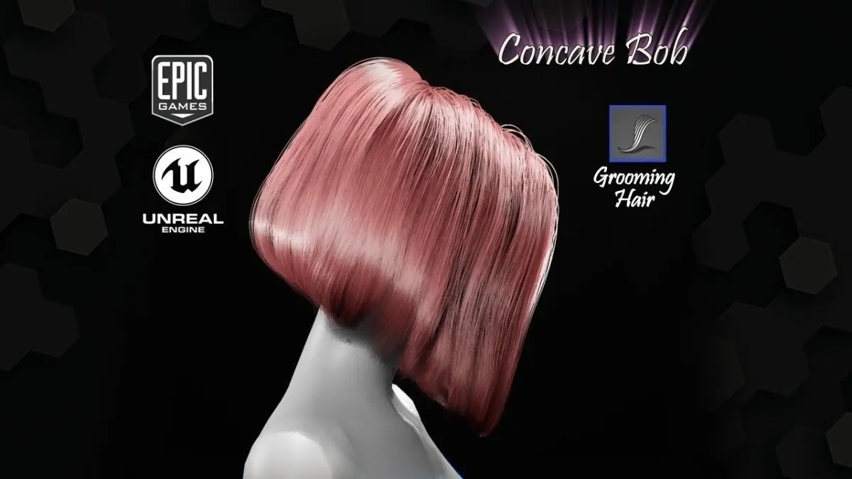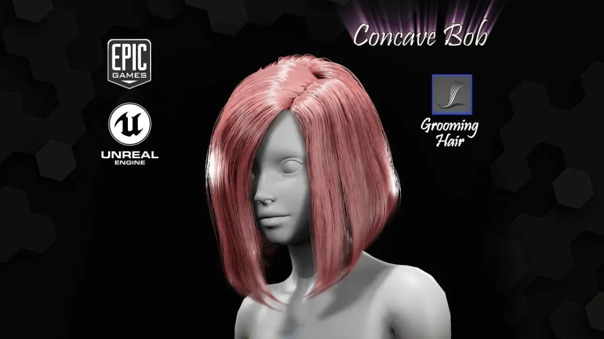 Concave BobGroom hair For Game, is a standard women's hairstyle set optimized for video footage, movies or games. For your convenience, all hairstyles are already defined in the UE4 scene, but the materials can be defined according to your needs.The pack includes:
