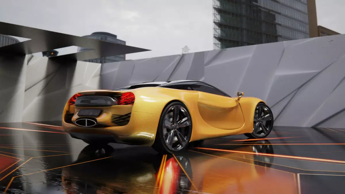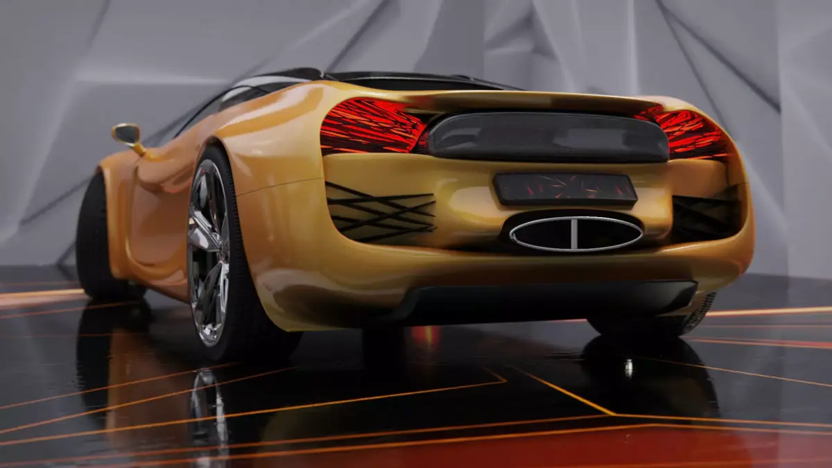 This is a sleek, futuristic concept car with a highly aerodynamic and luxurious design