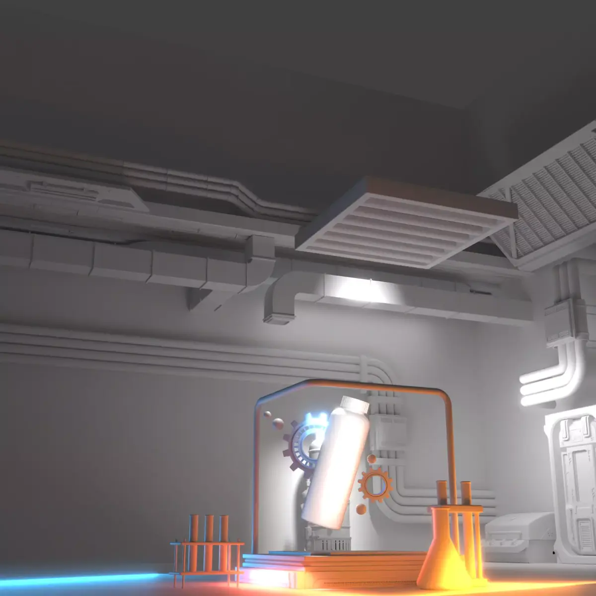 All three file formats are included in the compressed package.All the texture maps have been saved in the project file, and the scene models can all be edited. A scene showcasing sci-fi style adhesives. You can also use your imagination to display your own items.