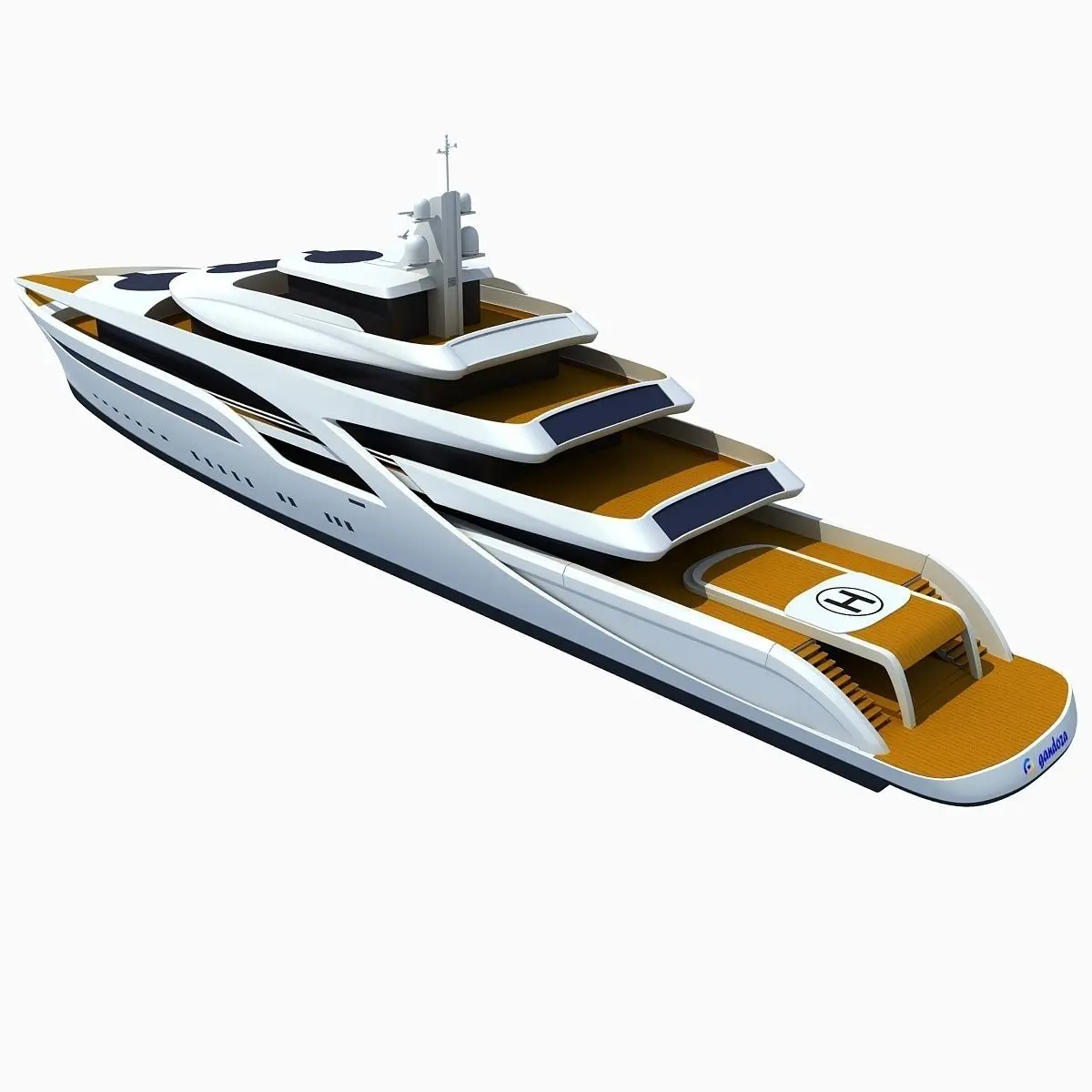 High-quality 3d model of concept luxury superyacht.Comes with detailed color map JPEG texture (2048 x 2048).Perfect for close-up detailed renders.Every color and logo could be very easily modified.Previews rendered with V-Ray.