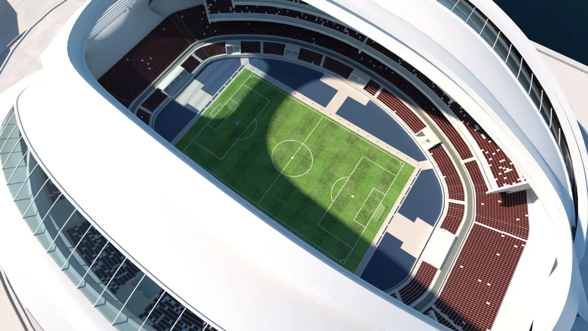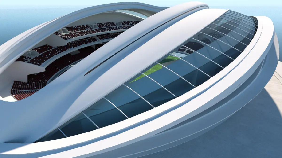 A conceptual model of the modern stadium. You can use the model by changing the filling, as shopping Mall, business centre etc.