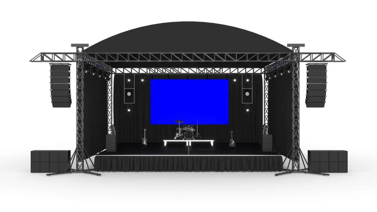 concert stage, truss, line array, spot light