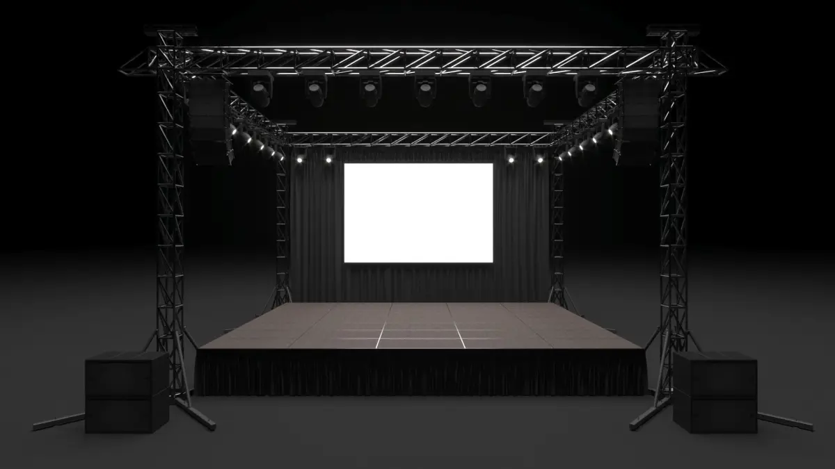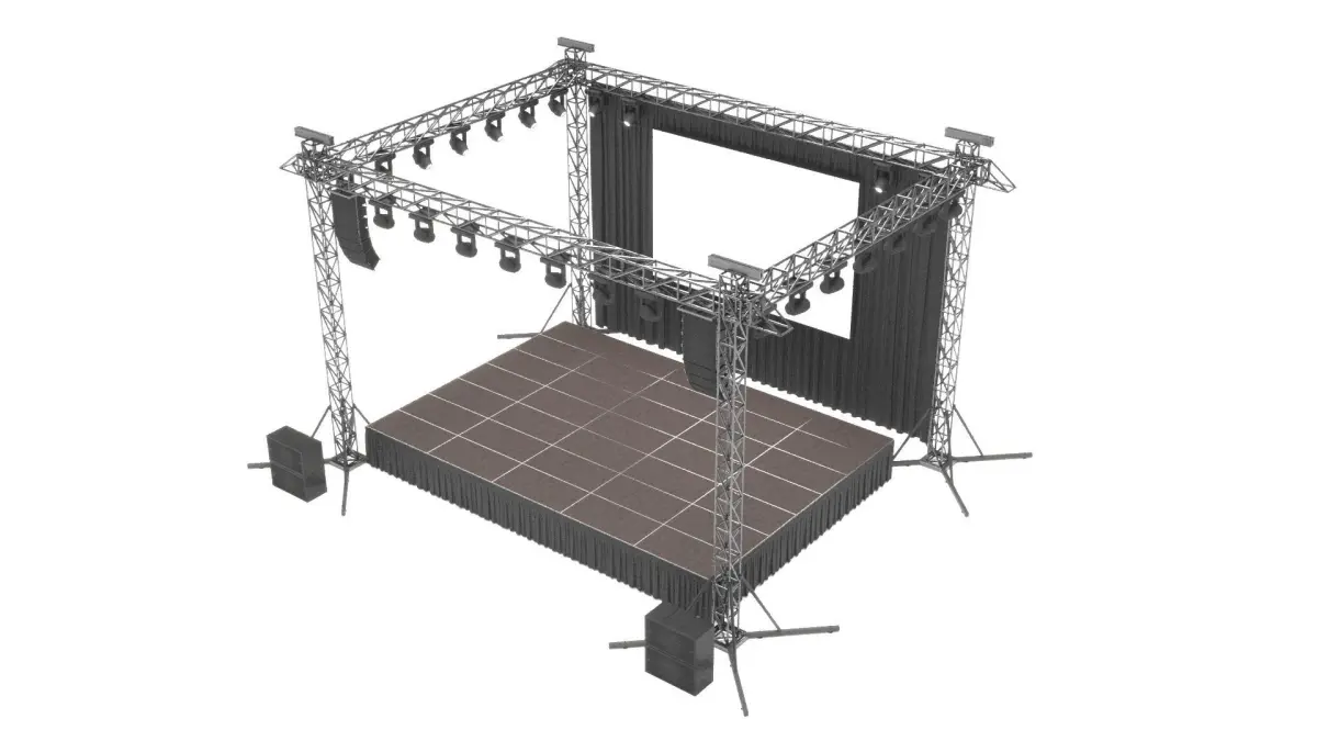 The model includes 4 leg truss, sound system, stage podium and spotlight model. You can edit the model as you wish. I also offer printouts in extra formats.