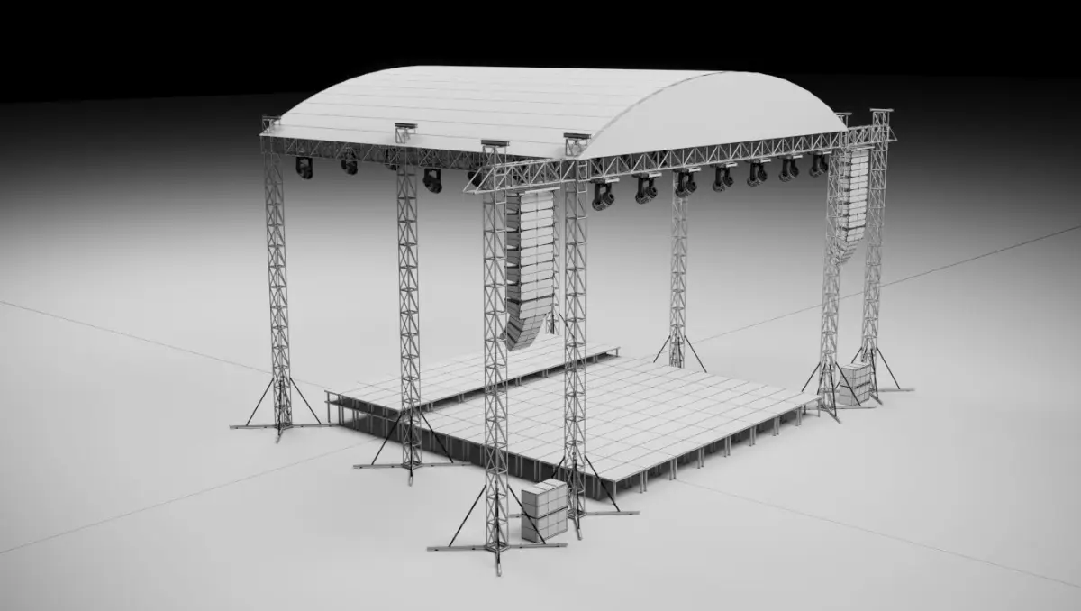 Stage Design Pack and Stage Design Module. The file contains a low polygon concert and festival stage model. You can arrange the number of lights and speakers as you wish. You can make changes on the model according to your activity. In addition, the file is designed for game makers and is saved in extra formats.