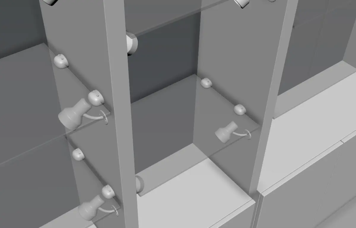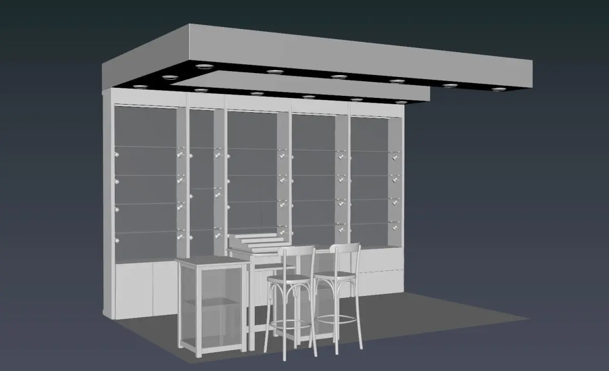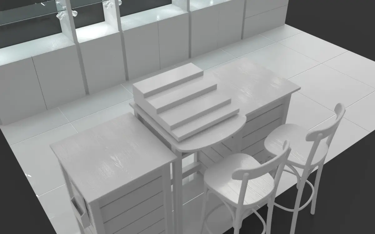 The scene contains the geometry with simple materials, textures of the floor and wood are also included.