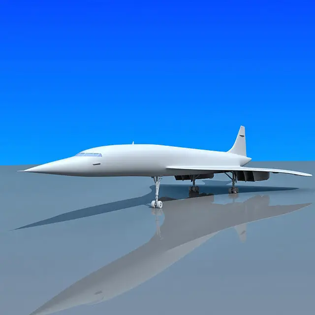 Detailed 2d model of Aerospatiale BAC Concorde supersonic jet aircraft.There are 2 Copies of the front part of the plane. One for the land scene and the other for air scene.
