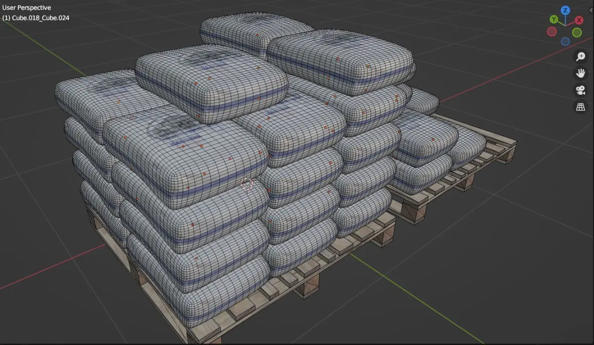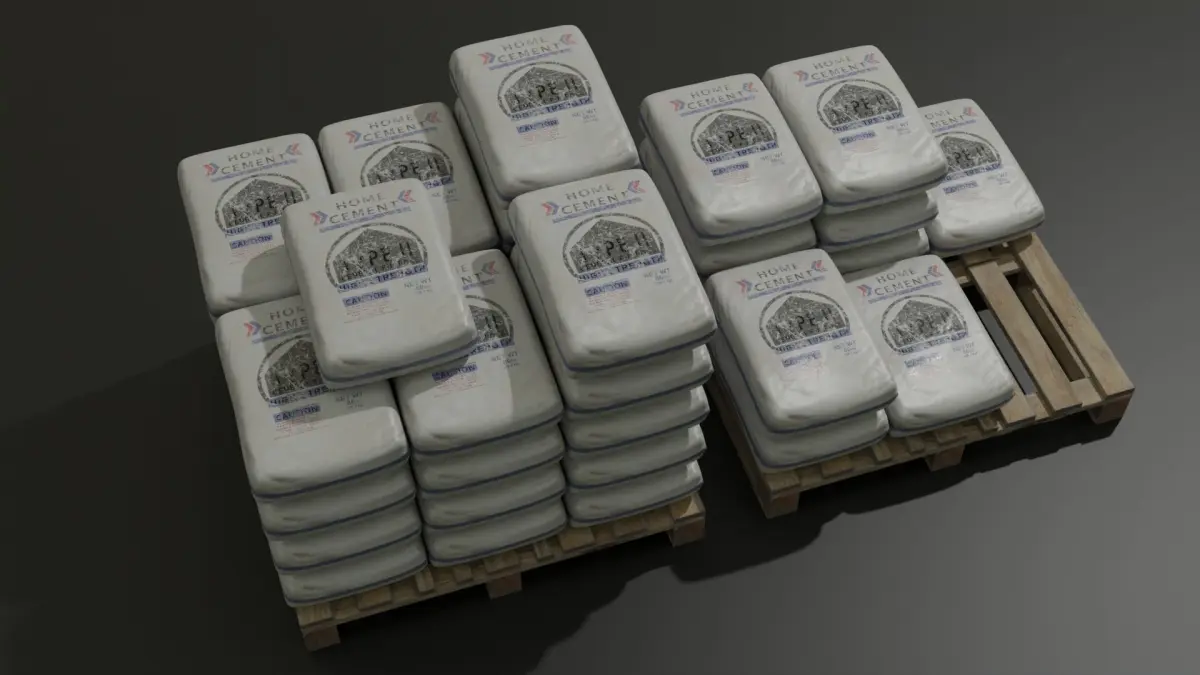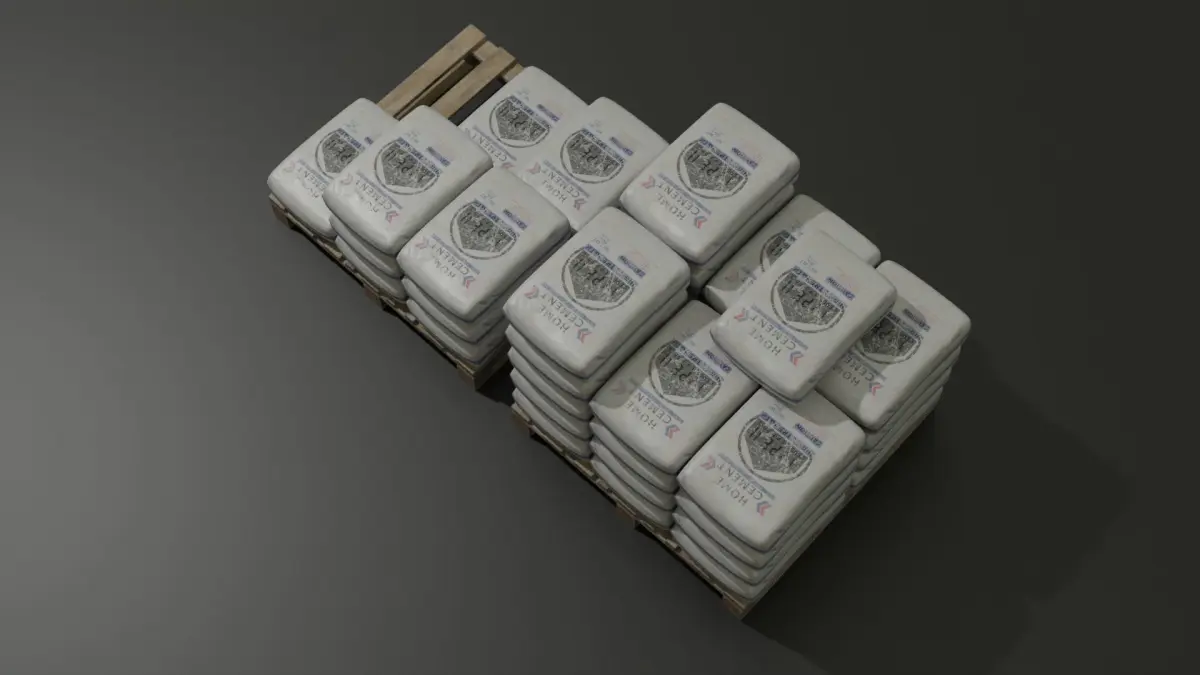 Here is a set of concrete bags and a pallet to help you with construction works.