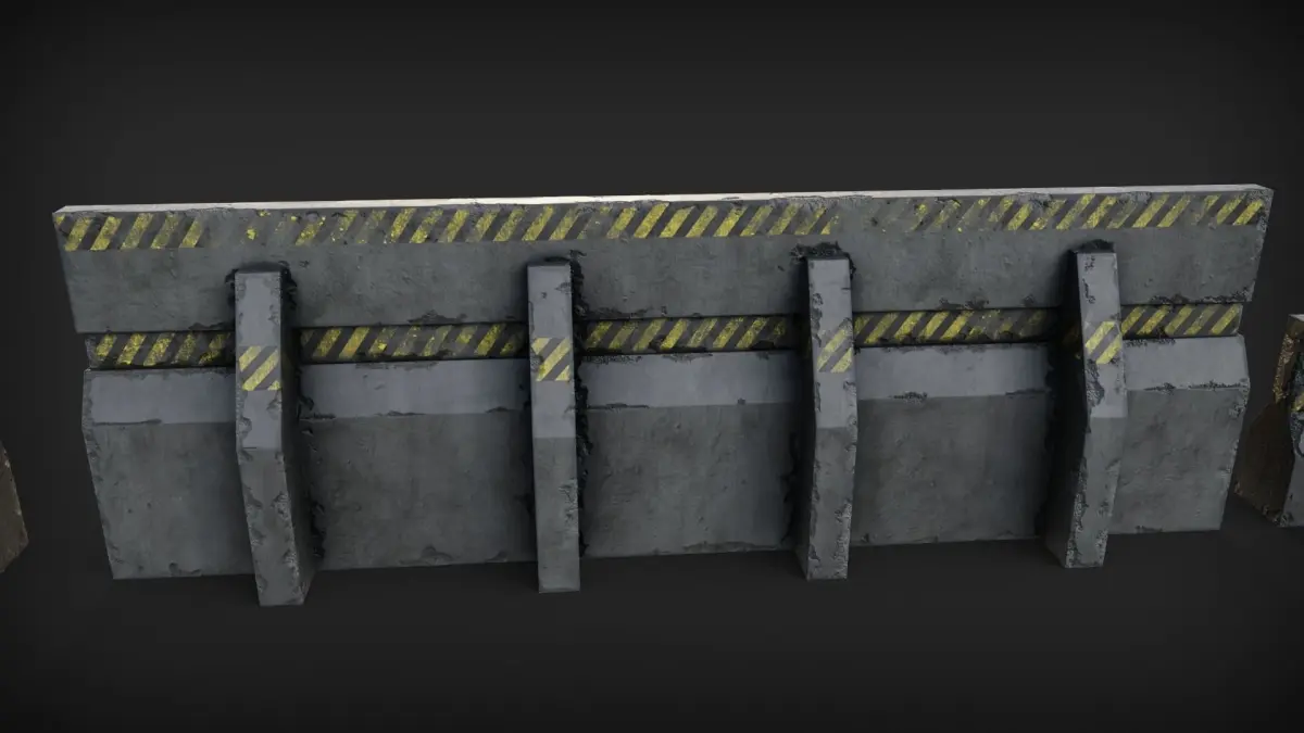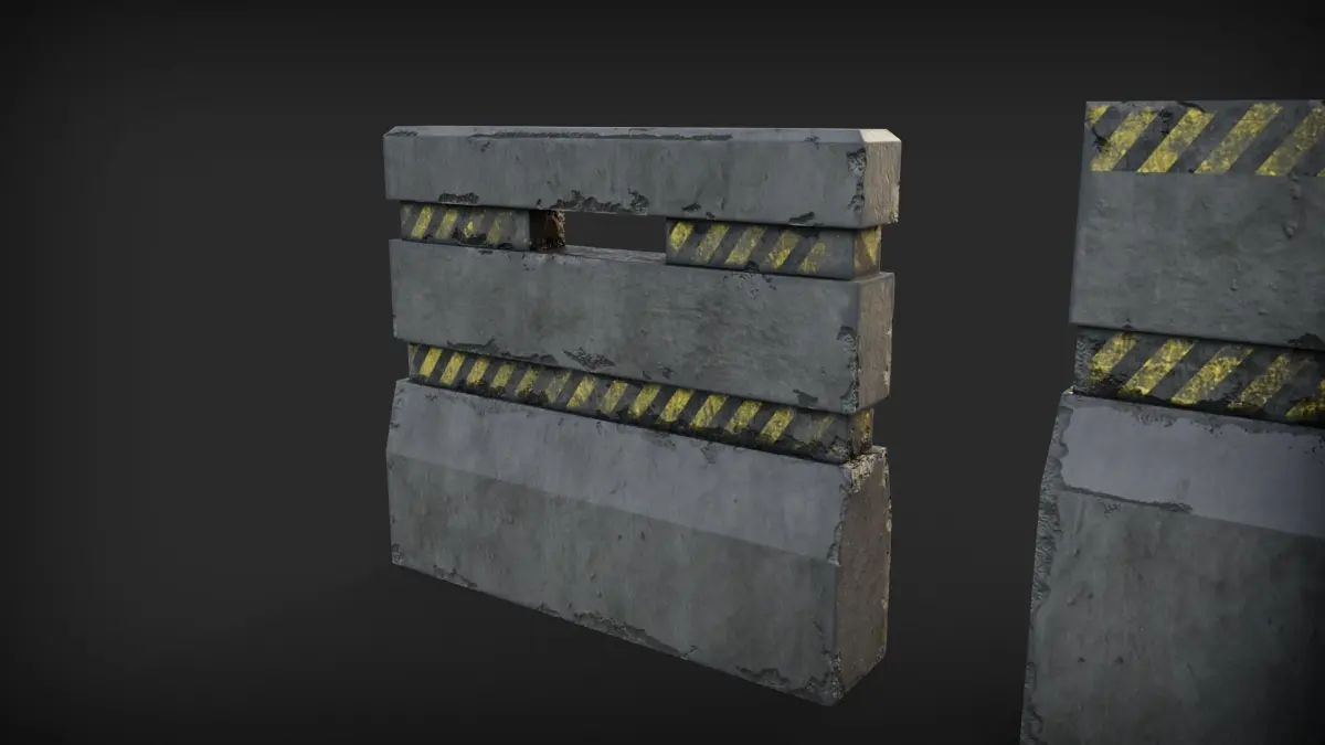 model includes concrete barricades barriersIdeal for video games since its low poly just about 600 vertices and works well in realtime engines tested in evee and unity HDRP can also be used as a scene filler and background object for vfx shots and filmss clean quad topologyuv mapped with 4k texturesclean topology can be subdivided and sculpted for details to bake on the low poly model