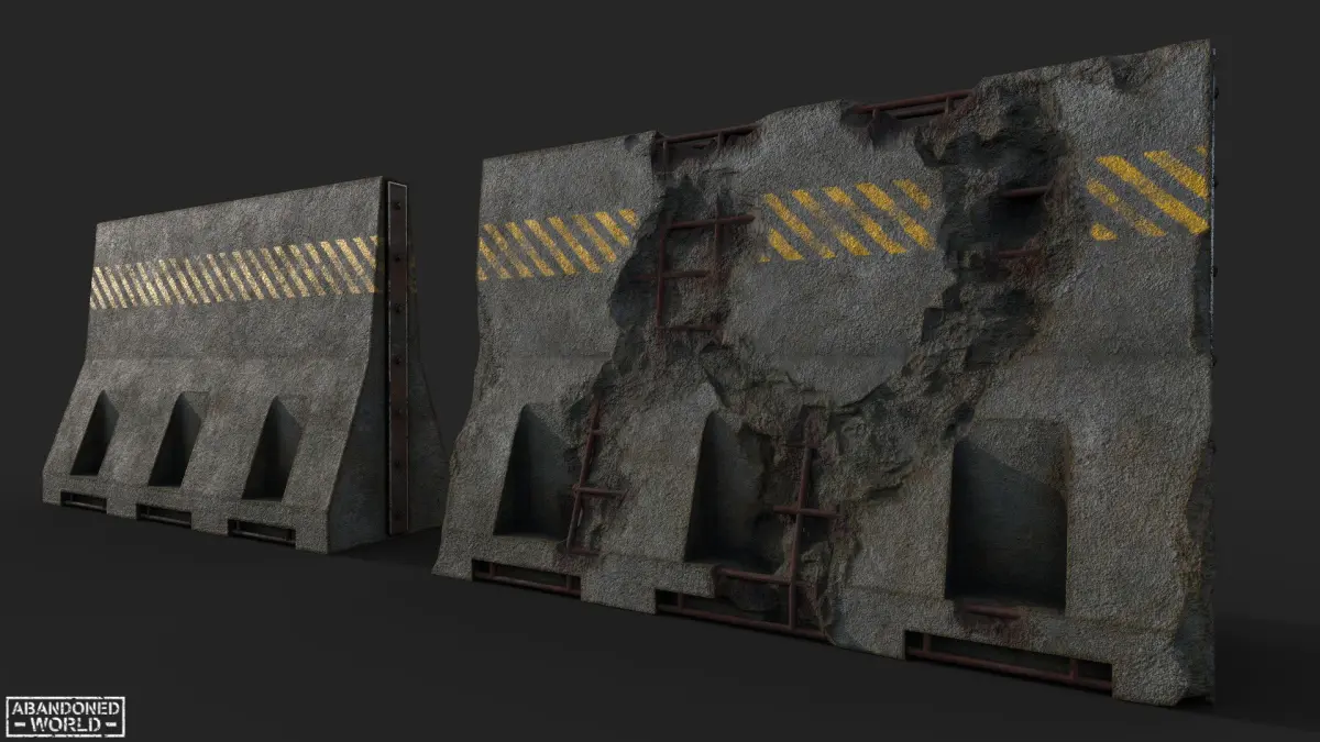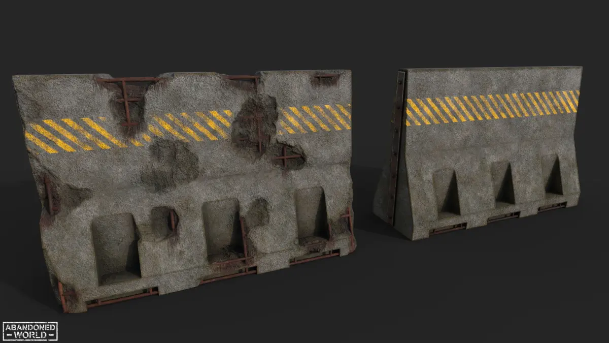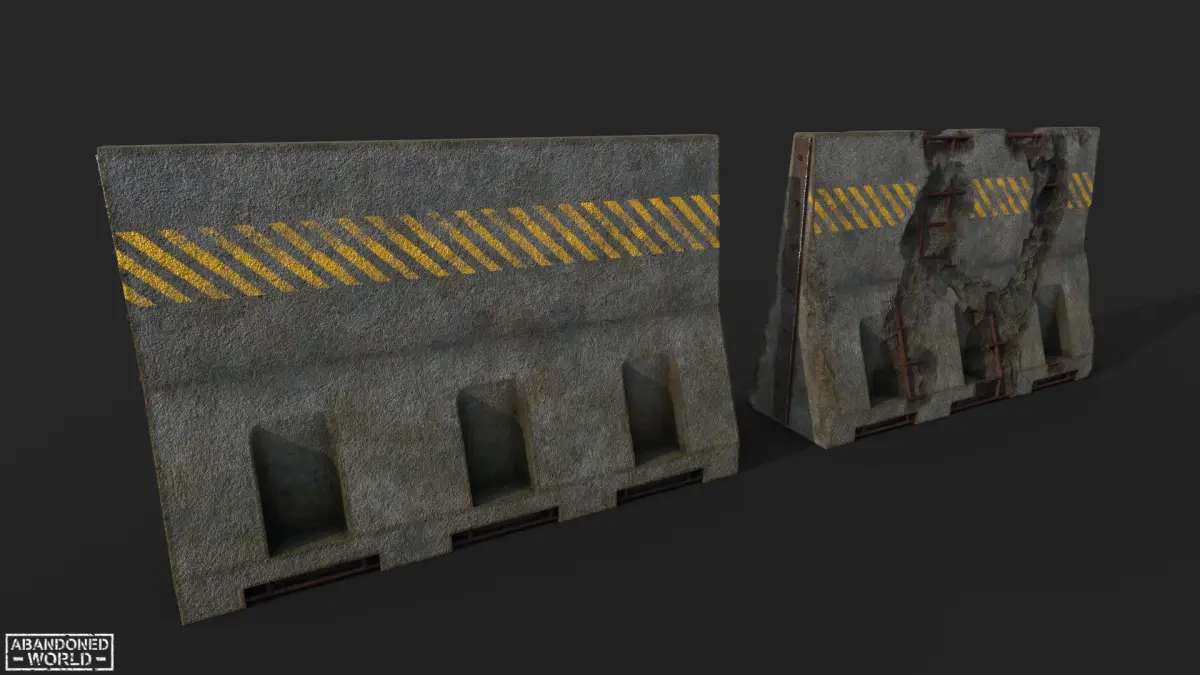 3D model of a new and old destroyed concrete barrier made in Game Ready. The models are designed to be placed on the street, on the road to limit traffic. Perfect for the Unreal Engine and Unity.