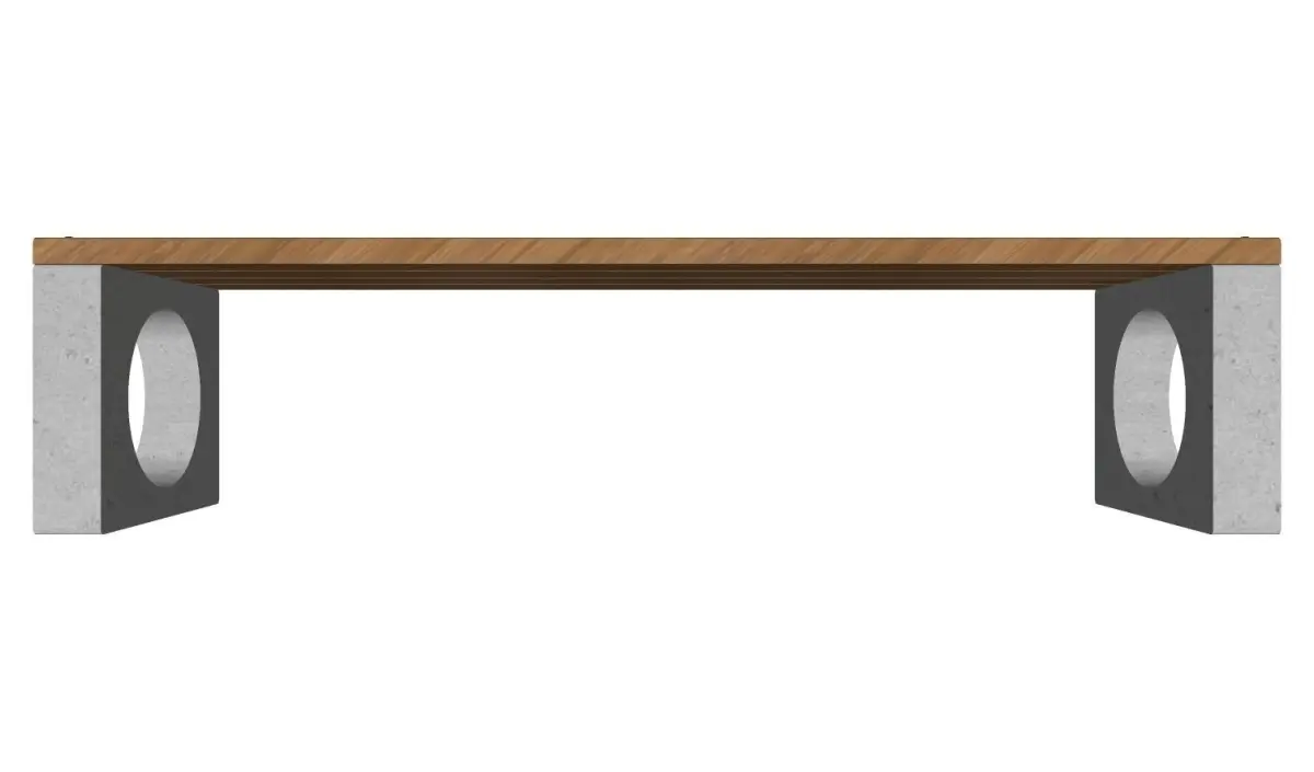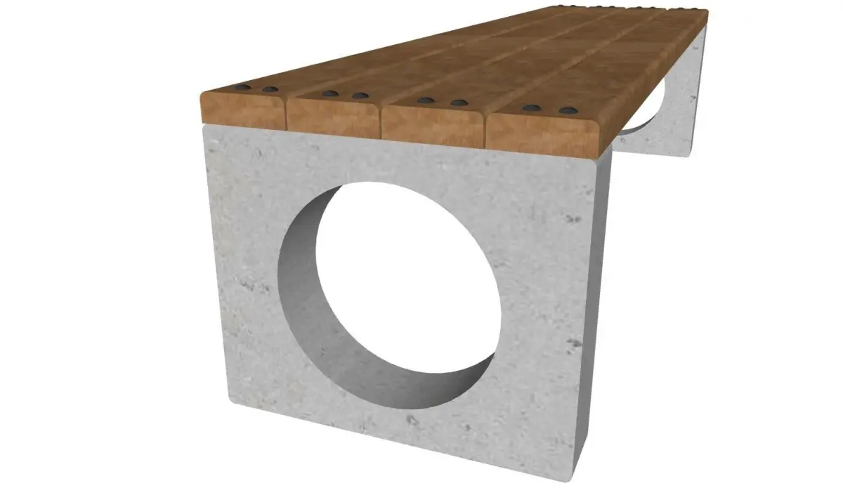 Park bench, with concrete base and wooden seat.