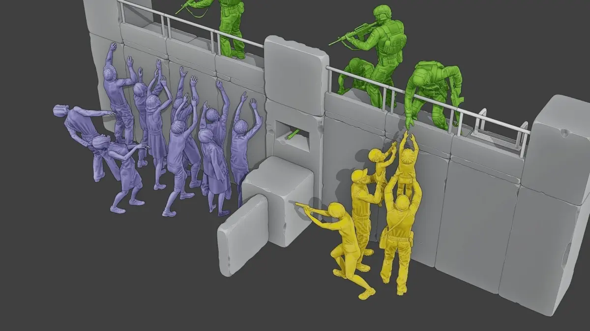 - The height of the human figures are around 65 to 75 mm approximately (depending on the pose of the model).