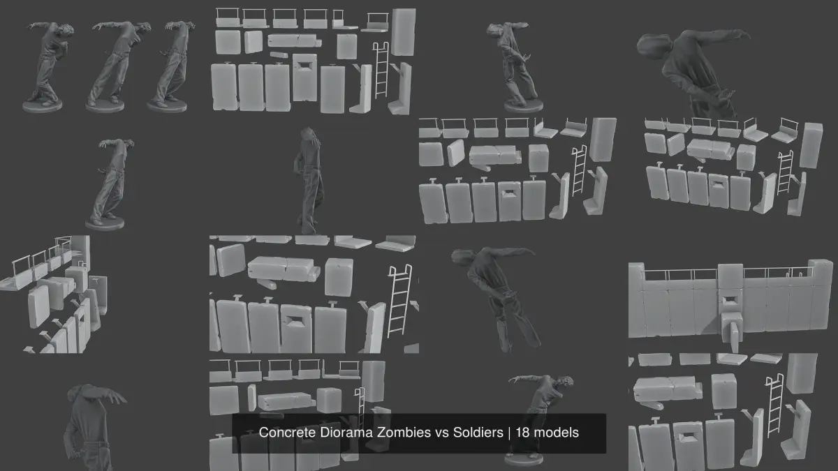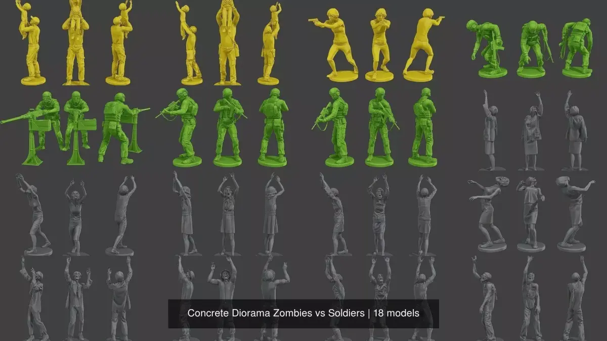 - Humans vs zombies models in action and wiht objects. A complete diorama for you.