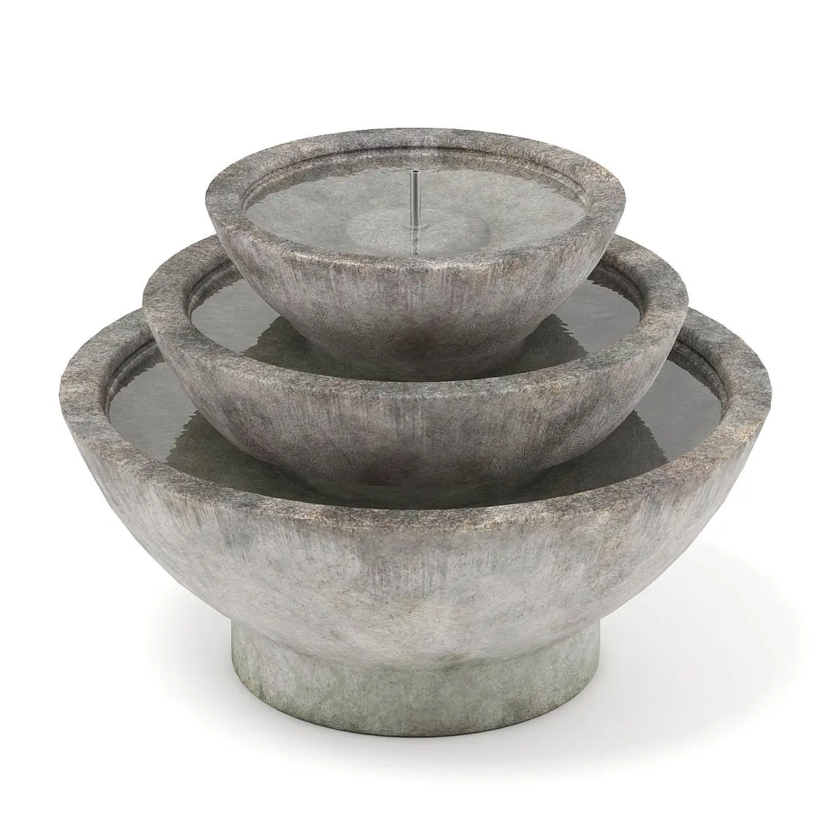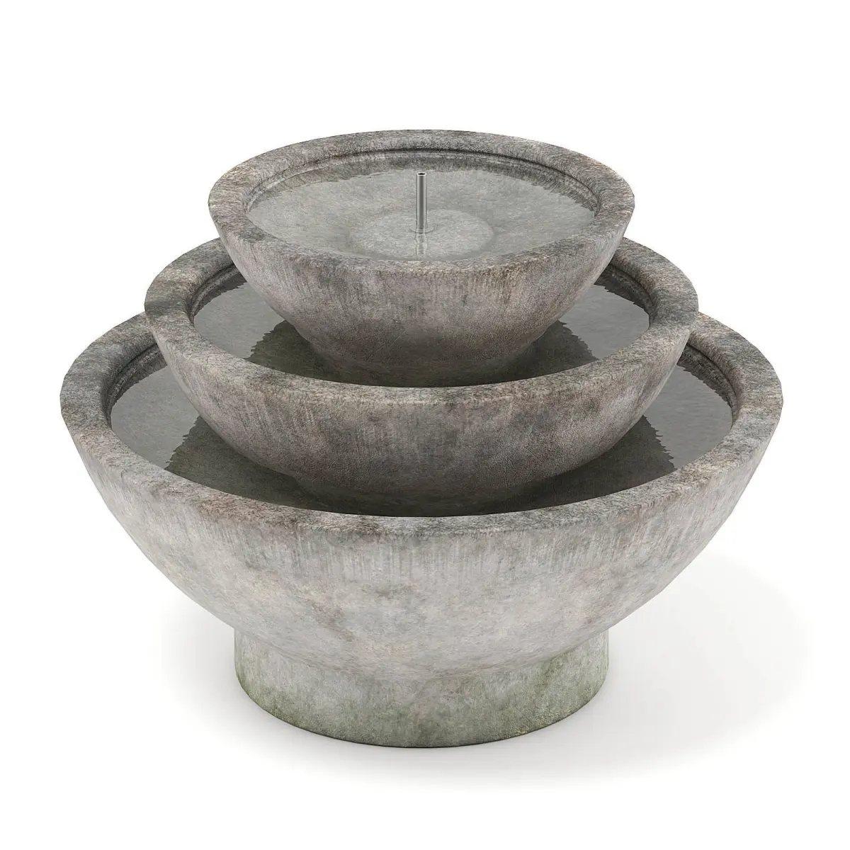 Three-level concrete fountain 3d model filled with water. Compatible with 3ds max 2010 (V-Ray, Mental Ray, Corona) or higher, Cinema 4D R15 (V-Ray, Advanced Renderer), FBX, OBJ and Unreal Engine.
