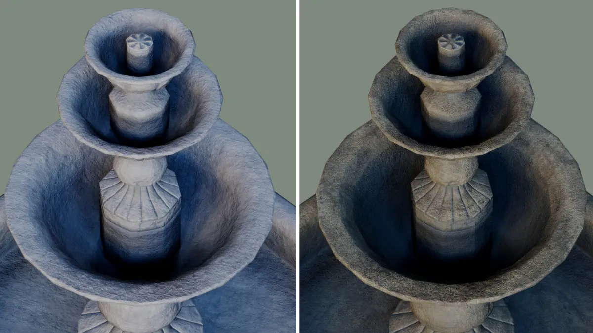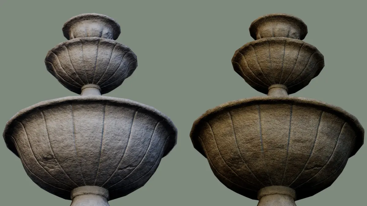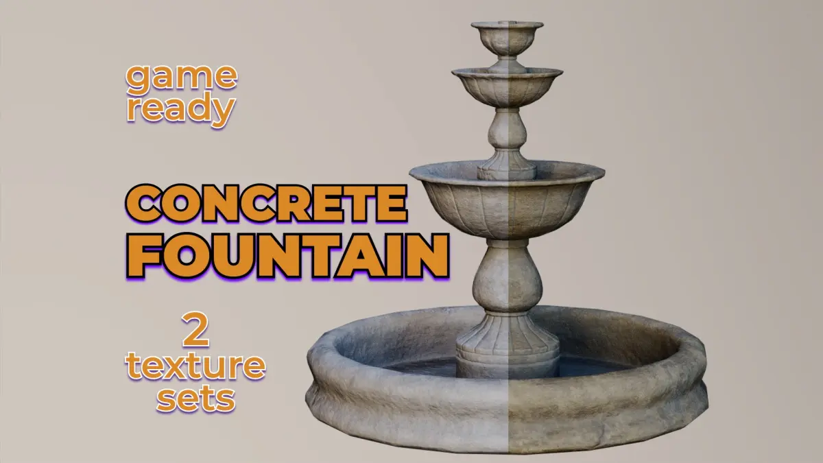 3D game ready model of ancient concrete and marble stone garden building - waterless, dried up fountains. You can fill the fountain with water.