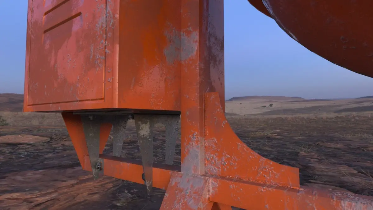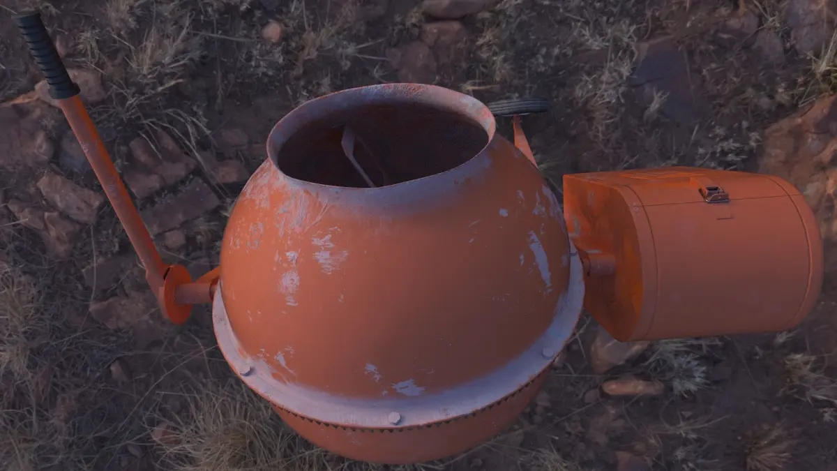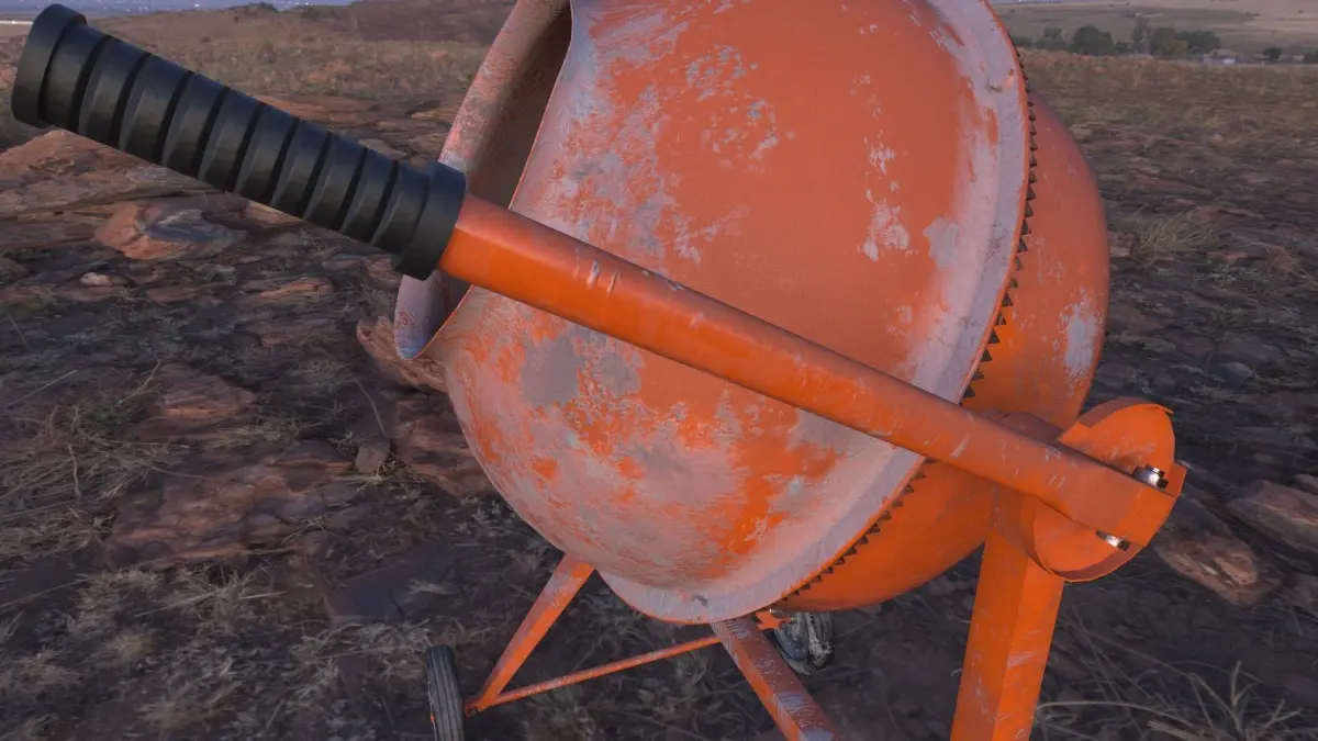 animated concrete mixer (drum rotates) rendered by substance painter iray render, pbr materials