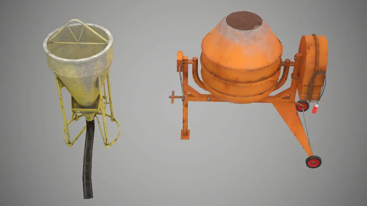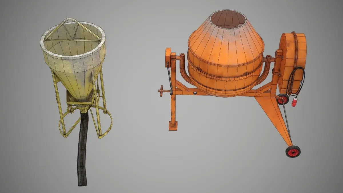 LowPoly Concrete Bucket and Concrete Mixer - PBR Game Ready