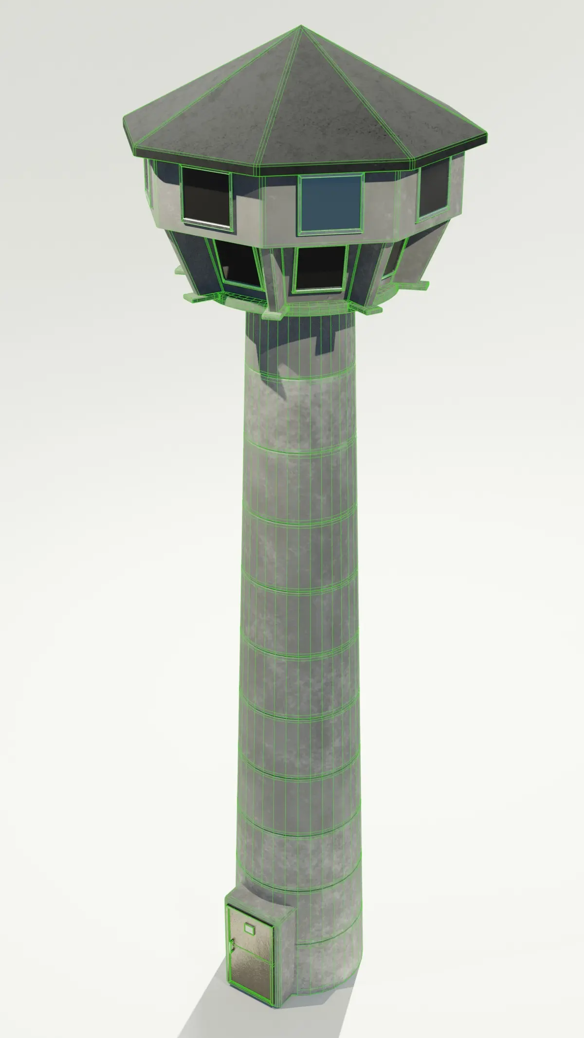 Concrete observation tower model. Consists of 7561 vertices, 7074 polygons. Model has dimensions 6.06mx6.06mx20.6m. Texture resolution 8192x8192. If you have problems with textures or materials, you can add them yourself. It is provided with this file.I have included some other file formats (fbx, obj, stl). This model have a polygon mesh and uv maps. The model may contain a small number of triangular and N-gon polygons.