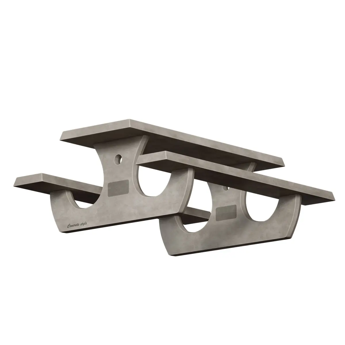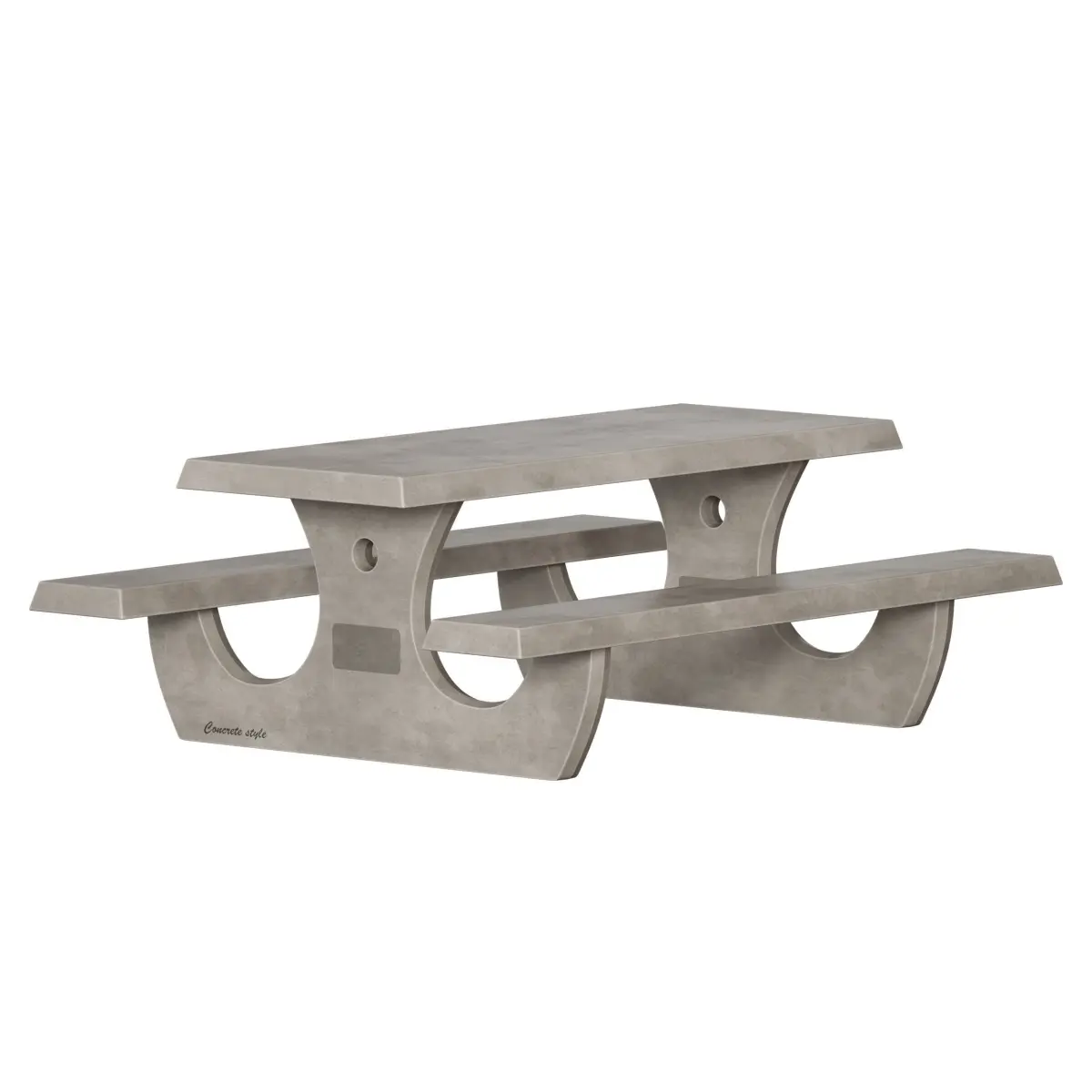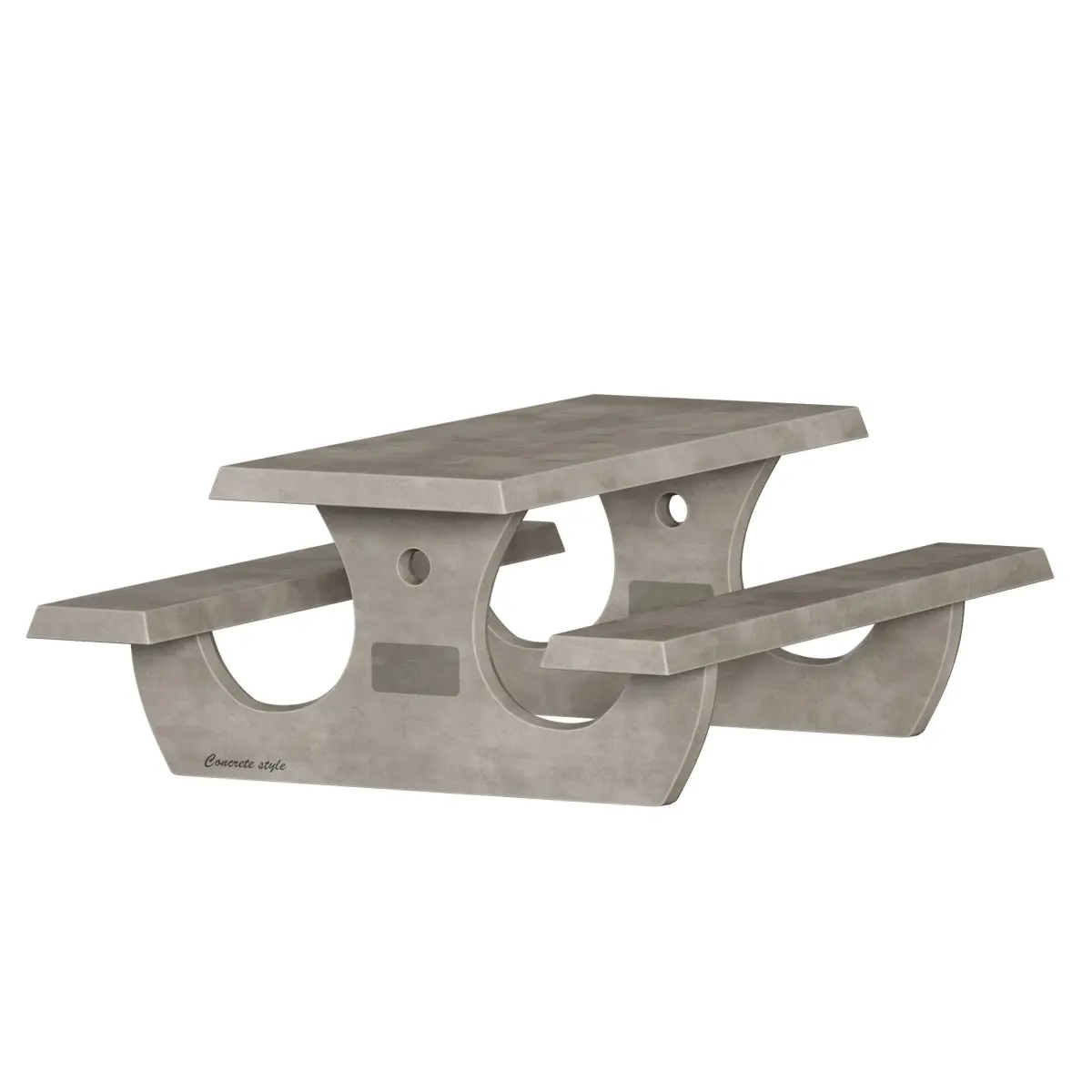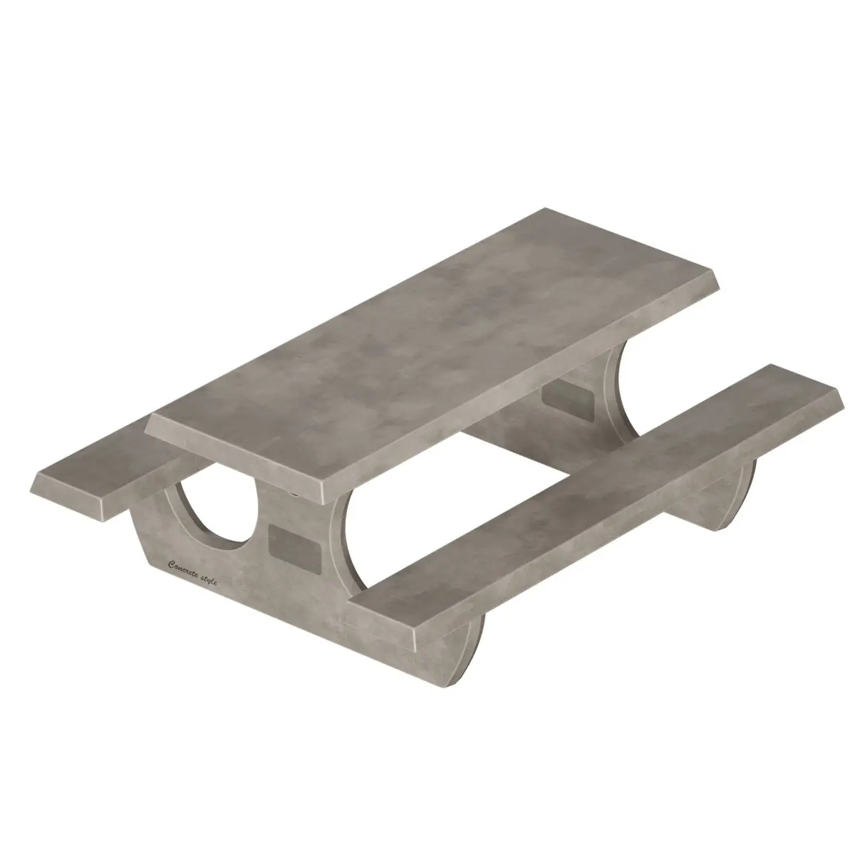 3D model of an outdoor table made of concrete, table top with benches on a concrete base. The color of the concrete is gray, beige. The model can be suitable for a yard, park, urban environment, beach, recreation area, garden, as a picnic table, etc.