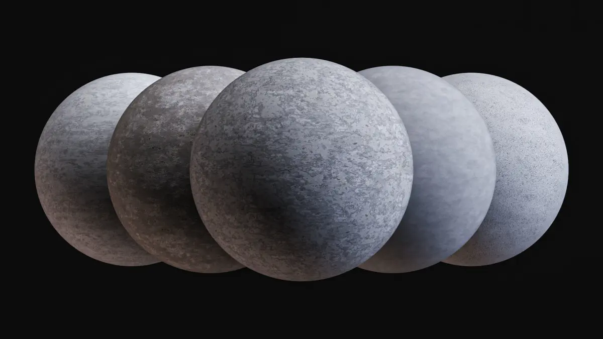 - 5 Unique Concrete Materials: Seamless and tileable textures, suitable for a variety of architectural and design purposes.