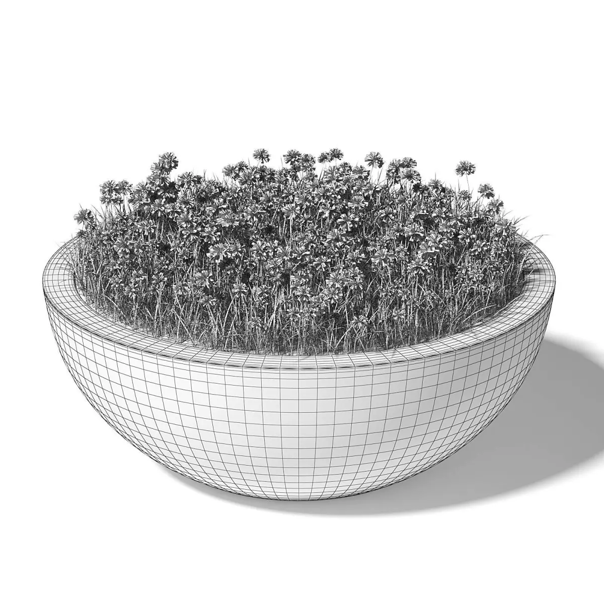 Large round concrete planter 3d model with blue cornflowers. Compatible with 3ds max 2010 (V-Ray, Mental Ray, Corona) or higher, Cinema 4D R15 (V-Ray, Advanced Renderer), FBX, OBJ and Unreal Engine.