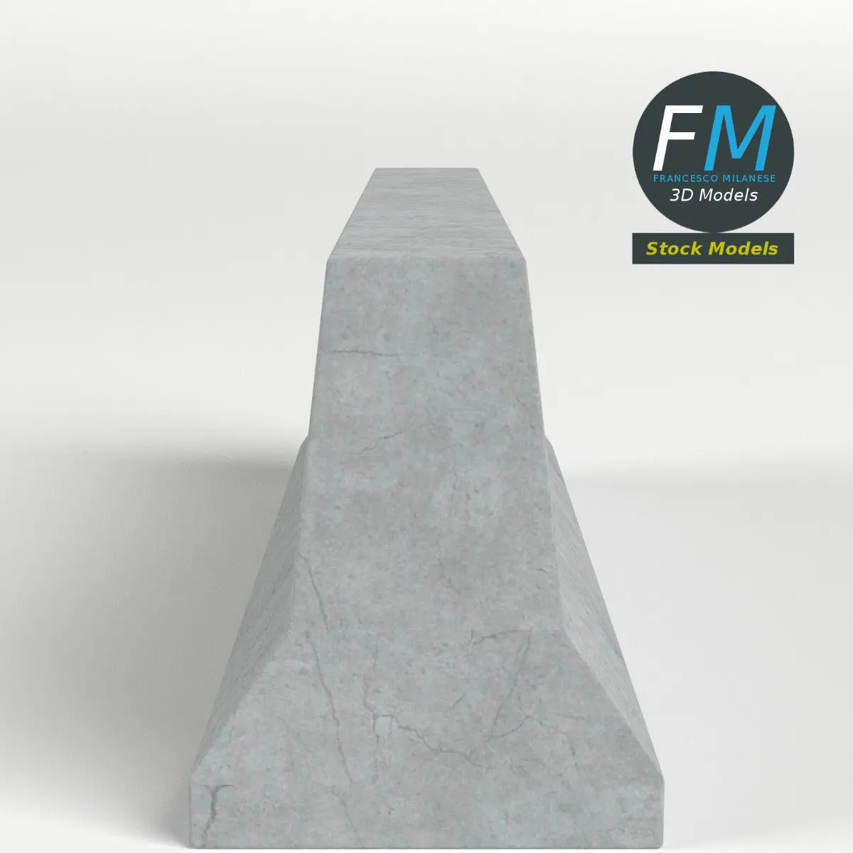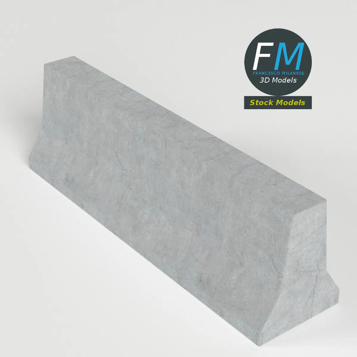 Concrete road barrier 3D Model. Production-ready 3D Model, with PBR materials, textures, non overlapping UV Layout map provided in the package.