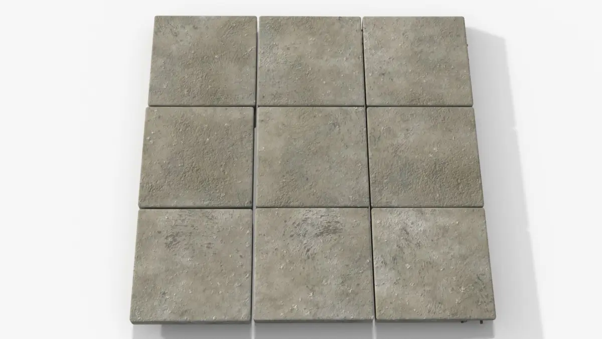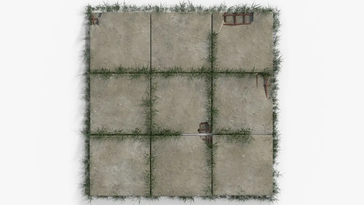 Low Poly concrete slabs damaged on top, non-damaged on opposite side. So you can assemble as many varieties of flooring as you can.