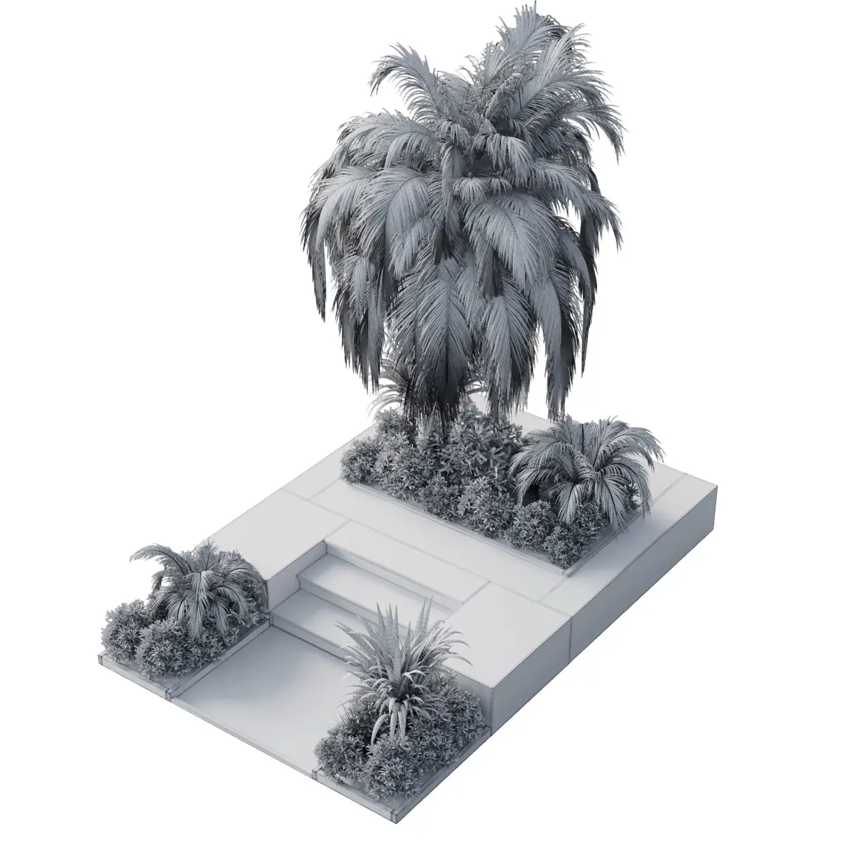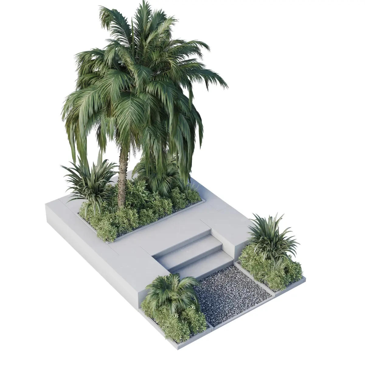 HomeCatalogConcrete stair garden with palm trees shrubs and grass set 112 3D model