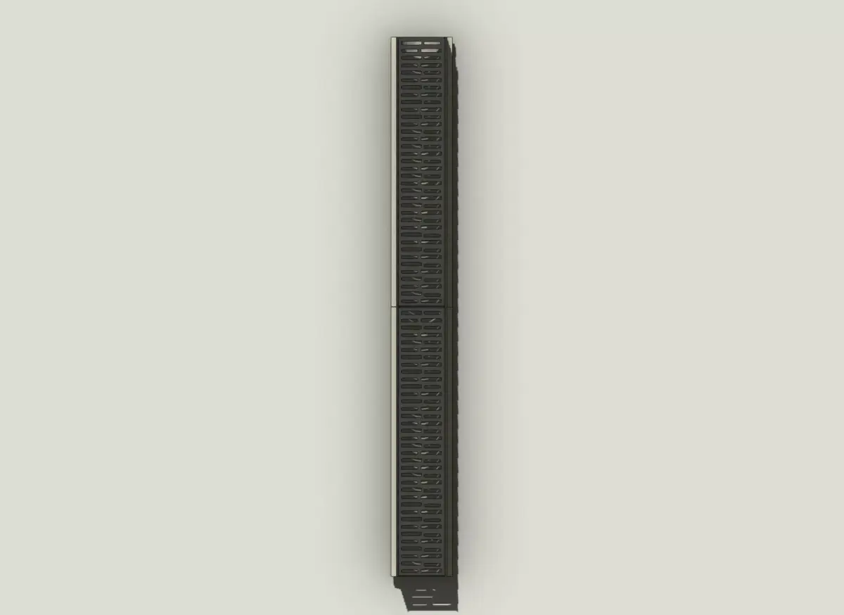 High quality concrete trench drain system V150 – 2000mm module with slotted metal grate.Designed for modular drainage installations in urban environments such as streets, parking lots, sidewalks and industrial areas.